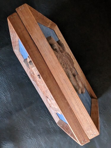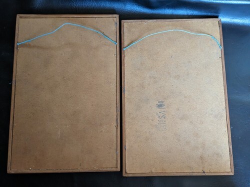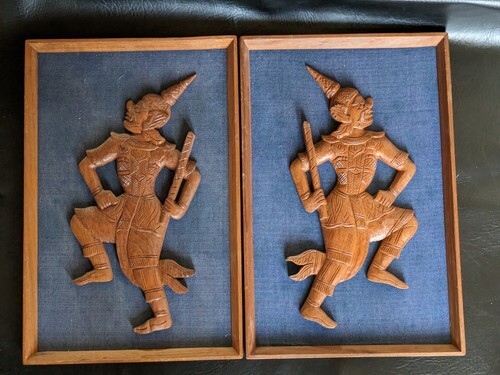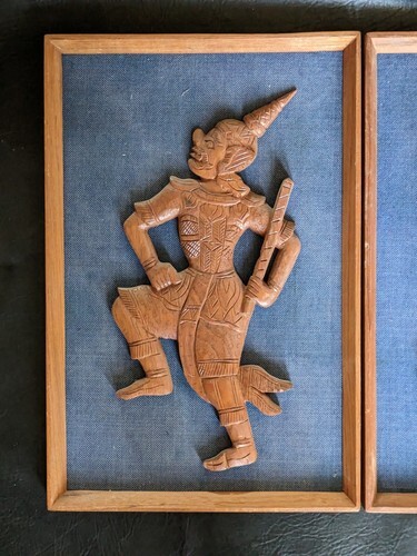 - Set of 2 MCM Carved Wood Asian Prince Rama Blue Mounted Wall Art 18 x 12 Inch