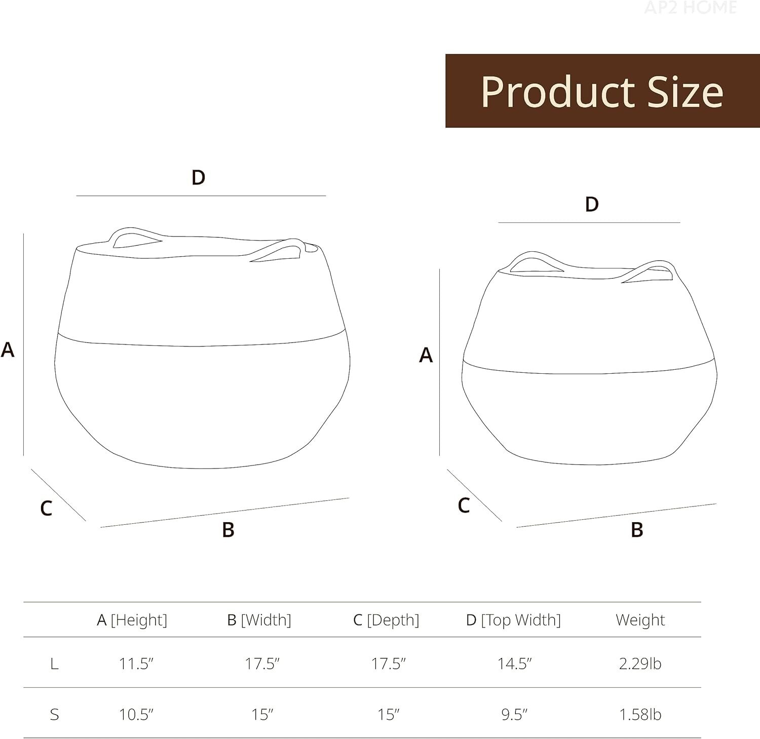 AP2HOME Set of 2 Natural Seagrass Woven Baskets with Handles for Large Small Plants, Floor Planter Basket, Laundary Basket for Bedroom, Hamper, Plant Pot Cover for Living Room (17.5" 15")