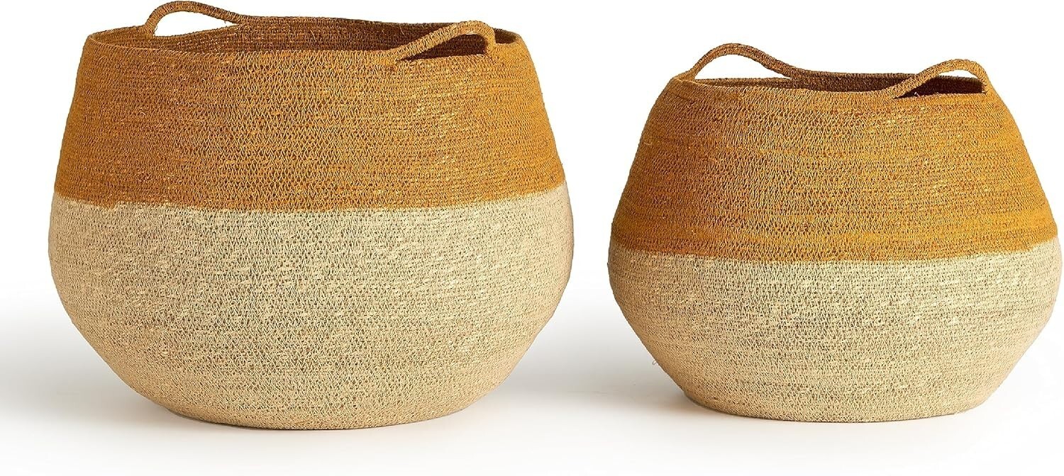 100% Natural material : Our baskets are made of seagrass ? one of the materials that humans have used the longest to braid various types of objects, with our color variations create a warm, rustic vibe. Sea grass has natural color variations which makes every basket unique There may be slight variance in size due to the nature of handmade items.