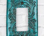 - Set of 2 Western Tooled Floral Turquoise Wall Single Gang Rocker Switch Plates