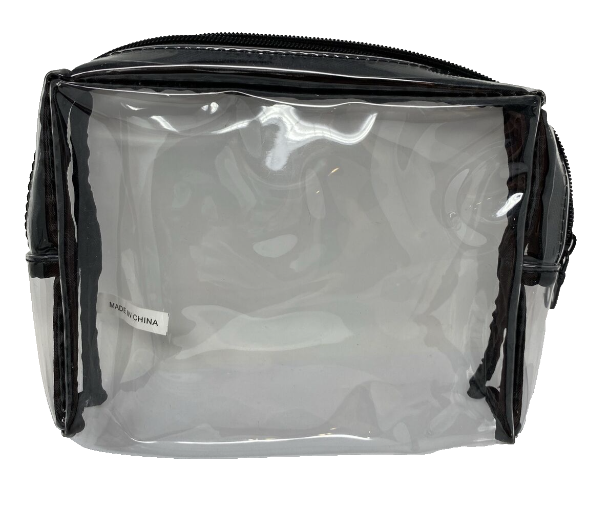 - Set of 3 Clear Vinyl Travel Zipper Pouches Black Trim