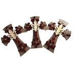 Beautiful handmade-style wall crosses featuring a three-layer design with glitter bronze, red embossed detailing, and gold fleur-de-lis centers. Perfect for rustic, Western, or traditional home decor. Lightweight and ready to hang together as a wall trio or individually.