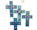 - Set of 4 Blue Mosaic Wall Crosses – Handmade Glass Tile Faith Decor 9x6.5 Inches