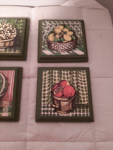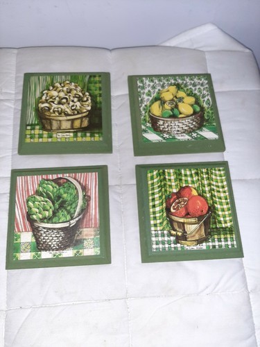 - Set of 4 Vintage Toni Evins Marks Plaques Wall Hangings Fruit Vegetable Kitchen