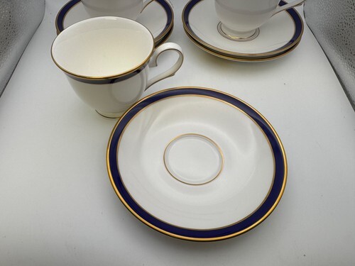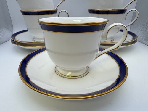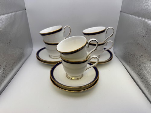 - Set of 6 Lenox Bone China FEDERAL COBALT Cups & Saucers with Gold Trim