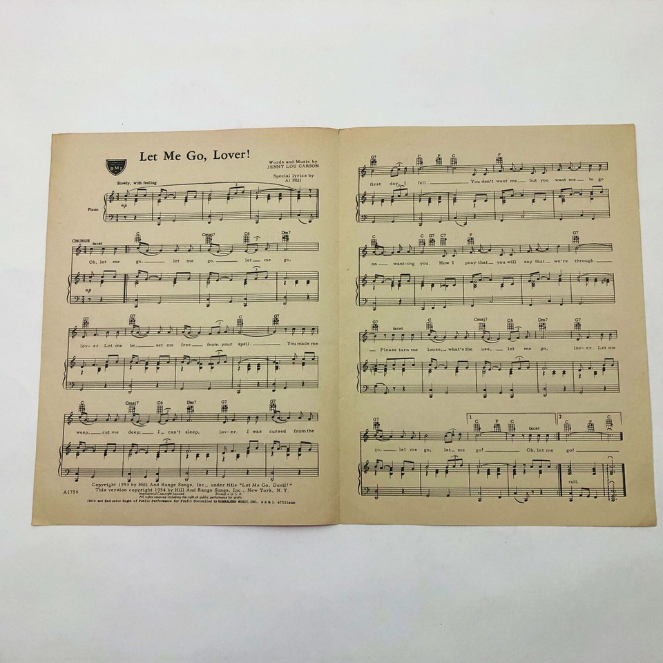 "Let Me Go, Lover!" Words and music by Jenny Lou Carson, Special lyrics by Al Hill. Copy right 1953 by Hill and Range Songs, Inc. under the title " Let Me Go, Devil!". This version copyright 1954 by Hill and Range Songs, Inc.