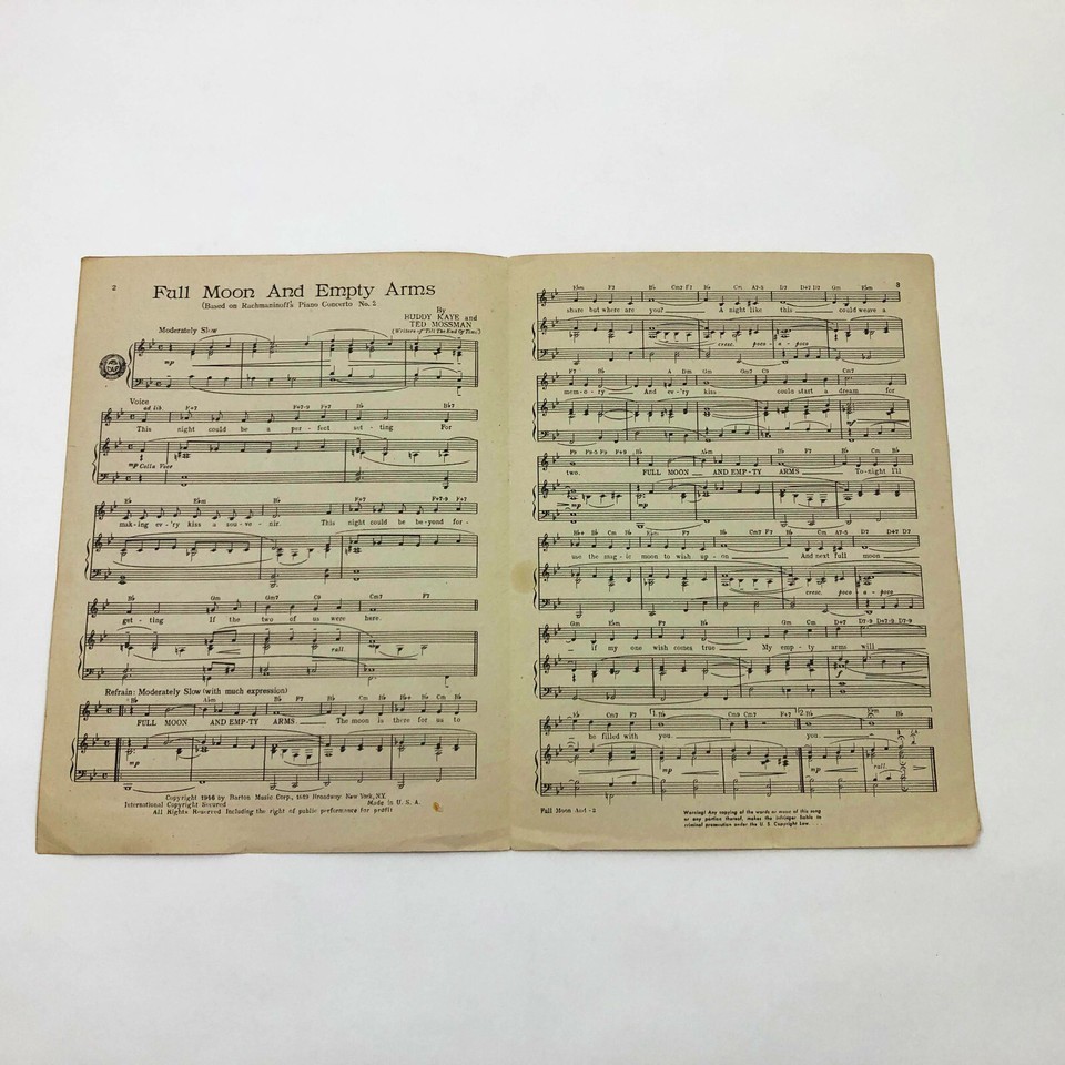 "Full Moon And Empty Arms" Based on the Rachmaninoff's piano Conerto No. 2. By Buddy Kaye and Ted Mossman. Copyright 1946 by Barton Music Corp.