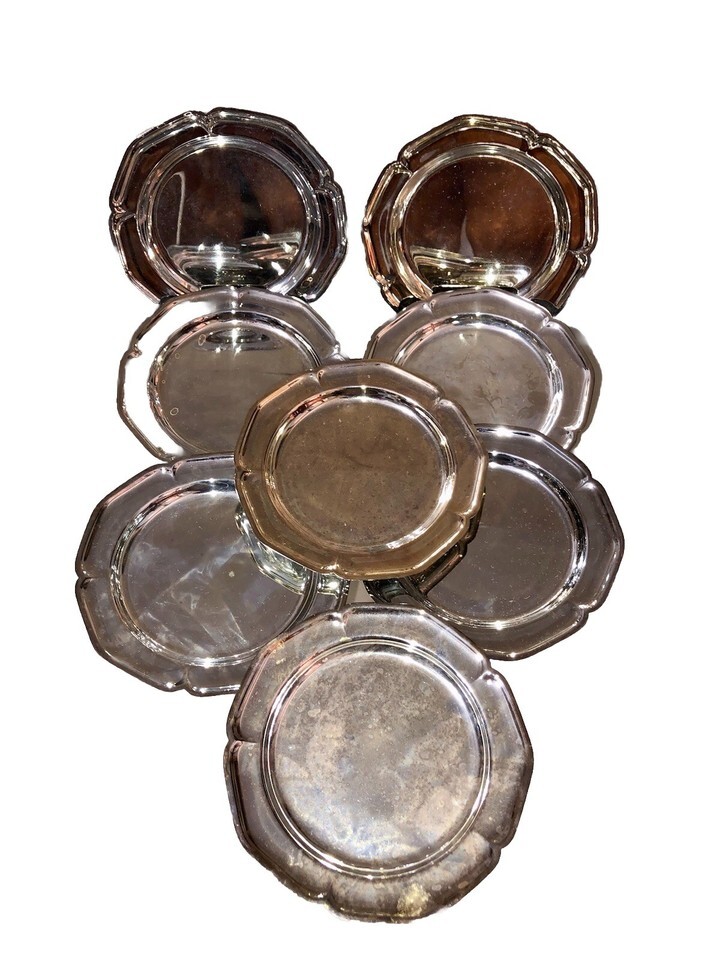- Set of 8 VINTAGE WM Rogers 6" Tray Plate Silverplated Scalloped Edge 988 Patina