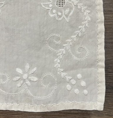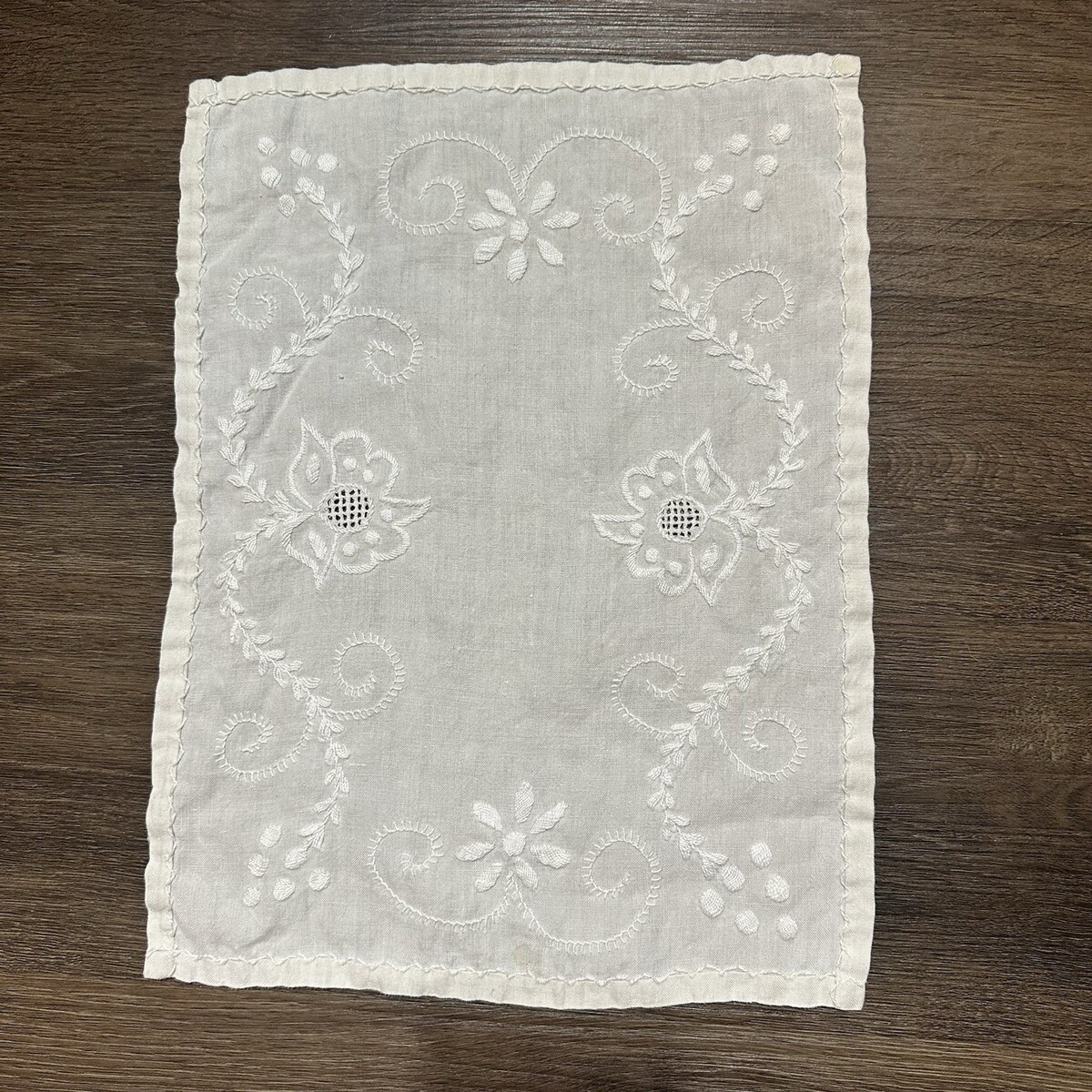 Set of 8 Vintage Hand-Embroidered Cloth Placemats with 8 Matching Napkins White