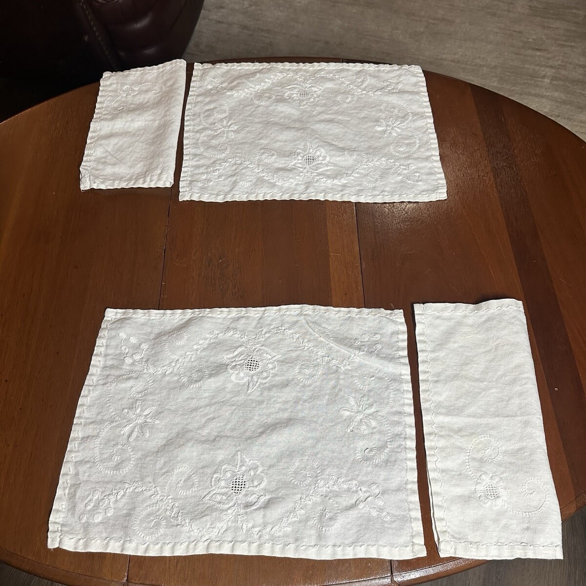 - Set of 8 Vintage Hand-Embroidered Cloth Placemats with 8 Matching Napkins White