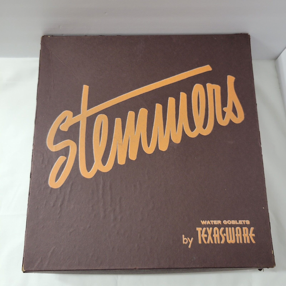 - Set of 8 Vtg Texas Ware Sapphire Blue Water Goblets Stemmers in Orig Box Unused