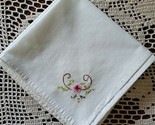 Ivory in color with an embroidered flower design in one (1) corner