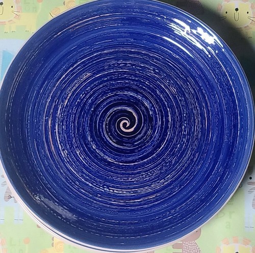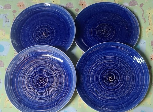 - Set of Four (4) ~ Mainstays ~ 10.5" Dia ~ Blue Swirl Stoneware Dinner Plate ~ 3