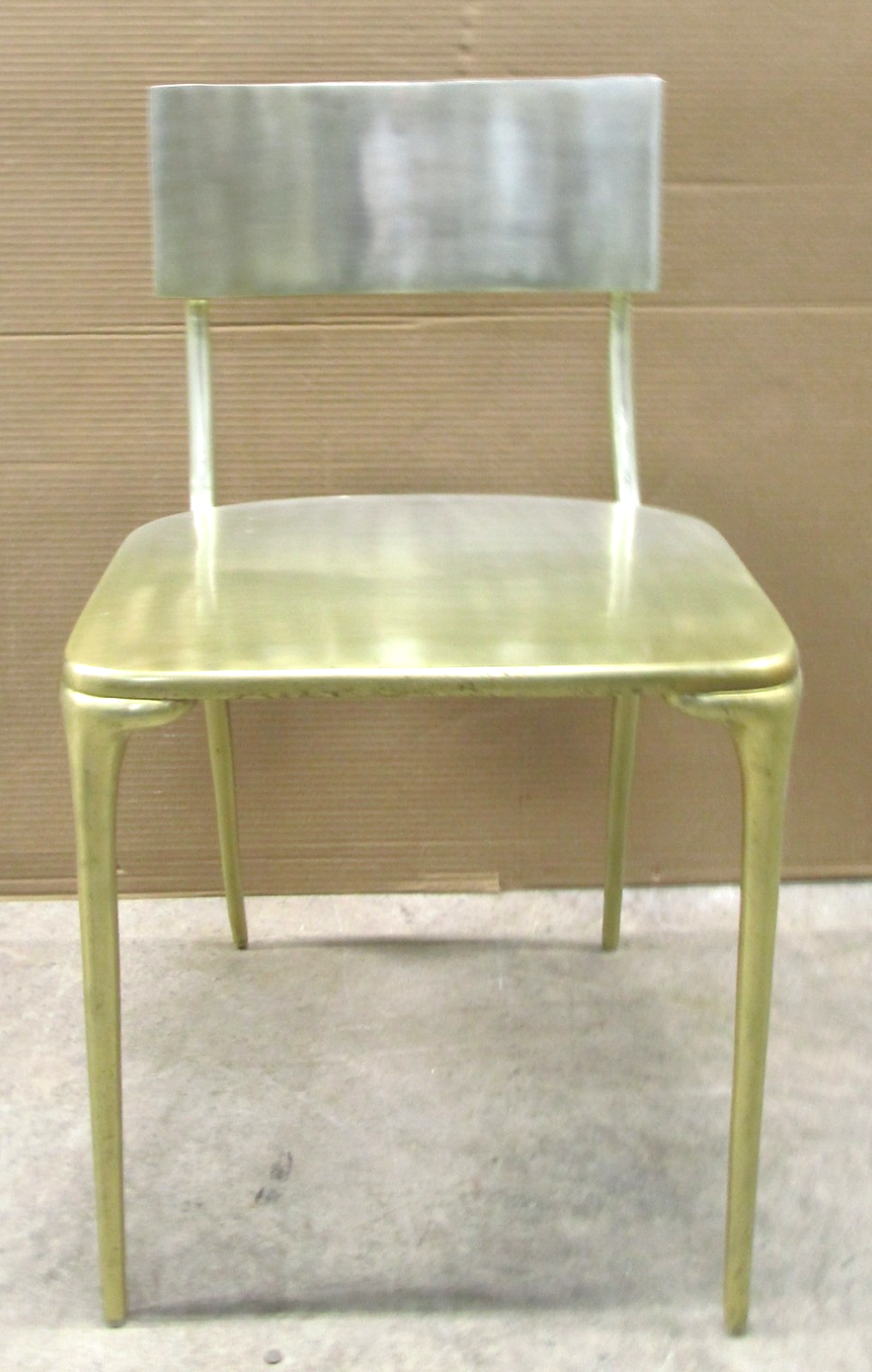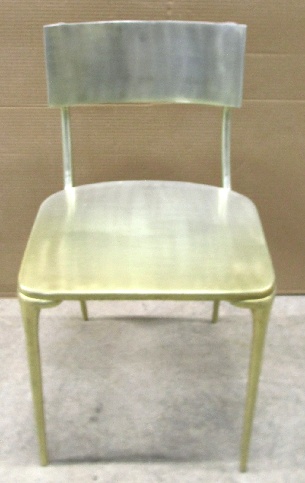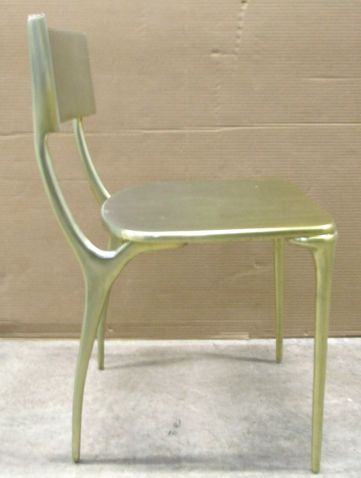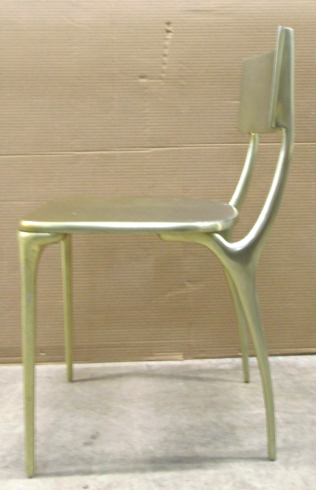 - Set of Four CB2 Oro Polished Silver Cast Aluminum Side Dining Chairs