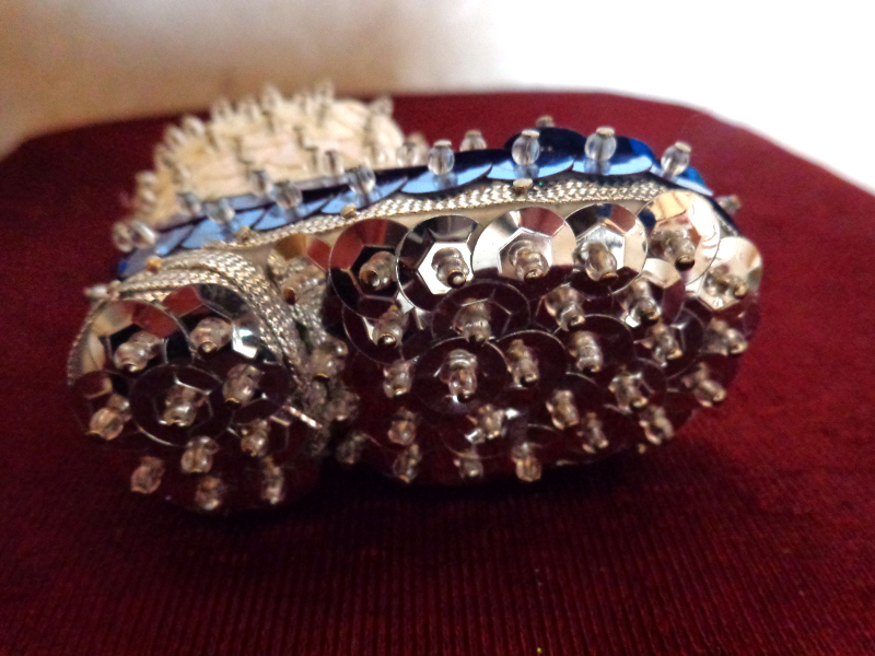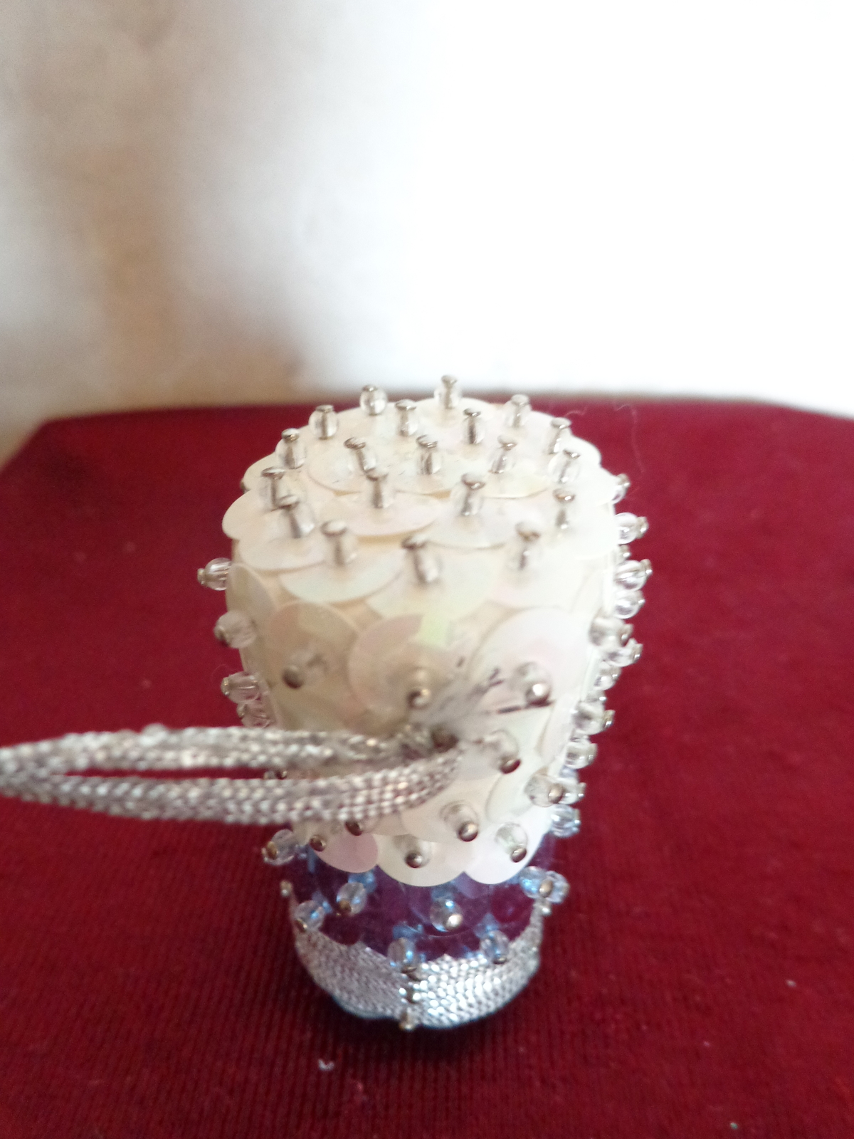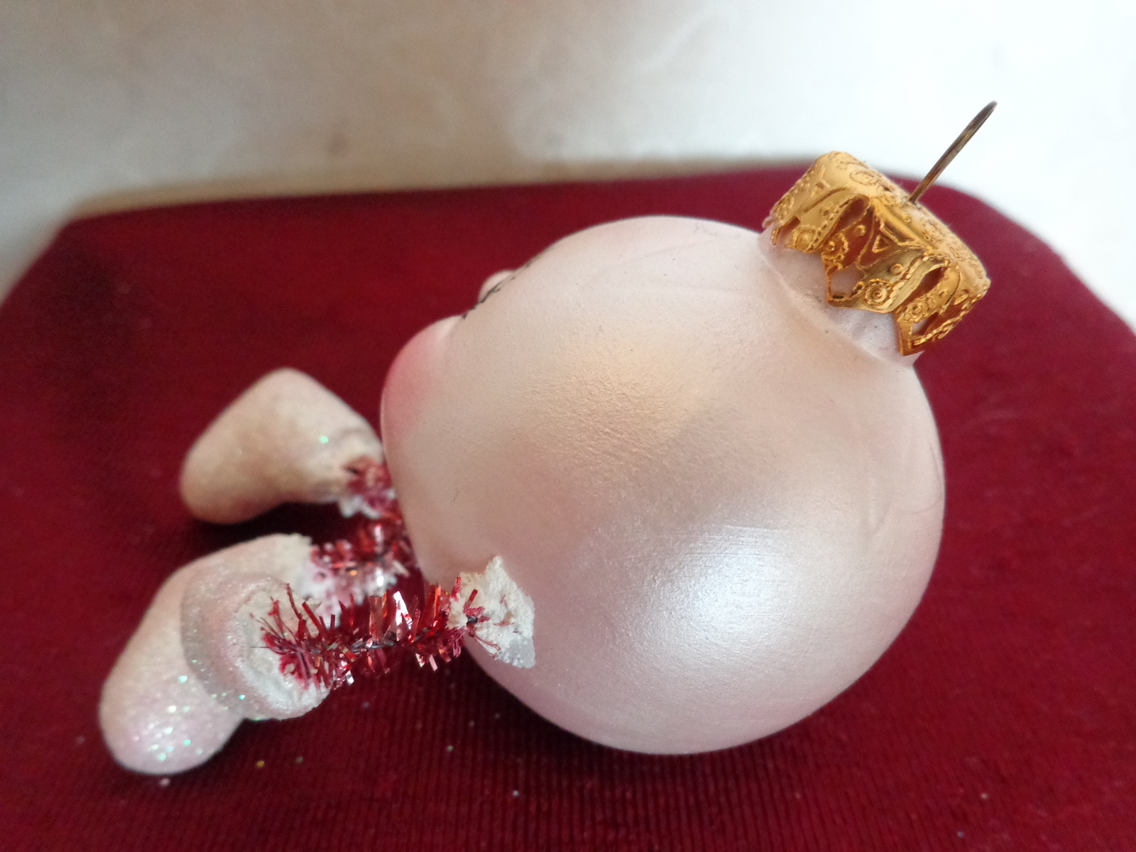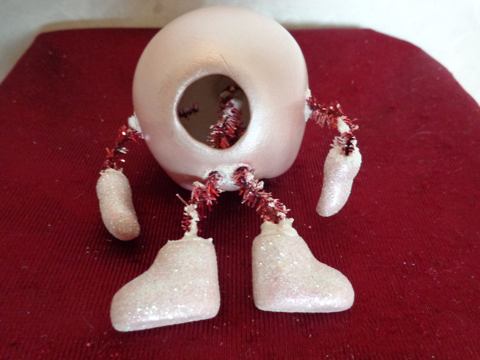 This is a Set of Two Christmas Ornaments (#2817). One is a Boot decorated with White Blue Sequins and the other is a Smiley Face with dangling Hands and Feet. The boot is 2 inches high and 1 inches wide. The smiley face is 1 inches in diameter. They are both in very good condition. Please see pix for a complete description.