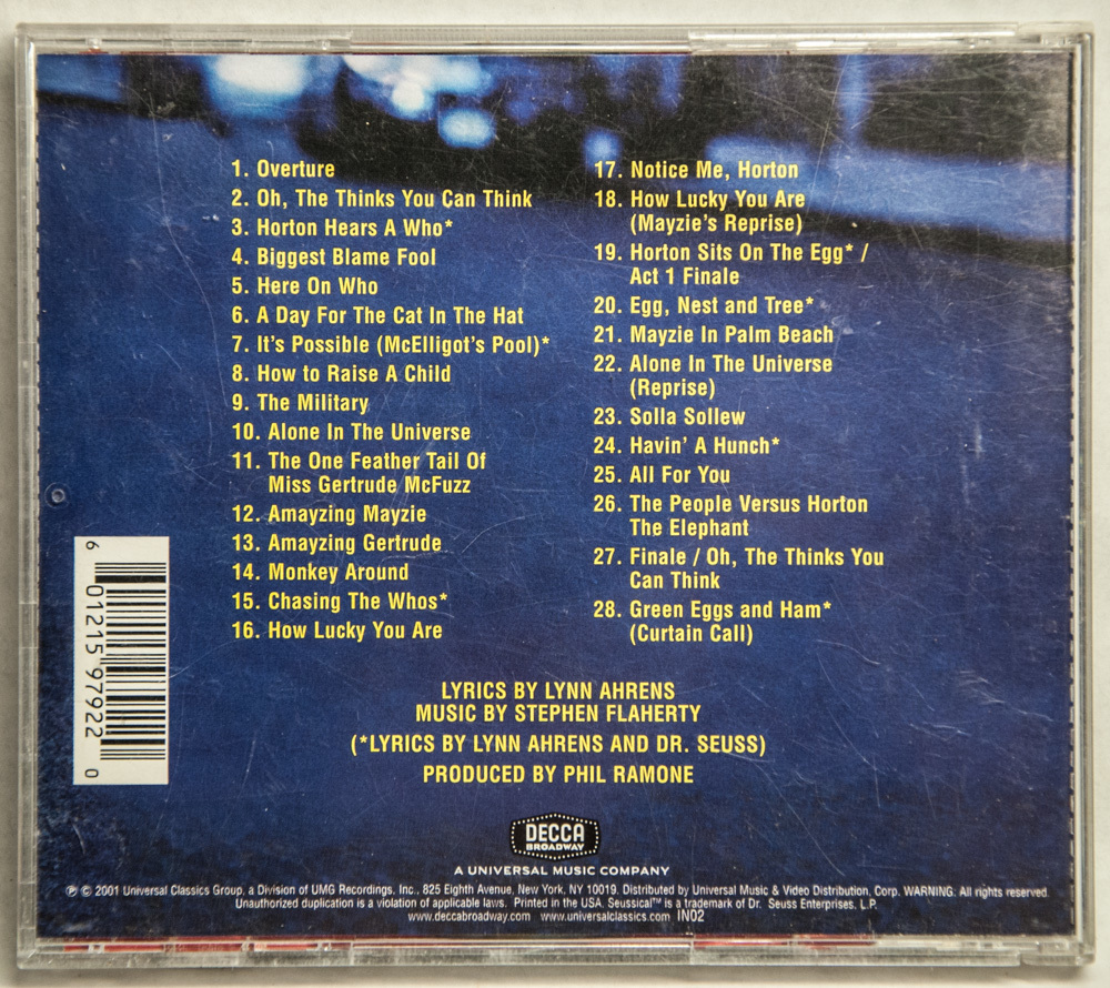 - Seussical The Musical 2001 Decca Broadway Music CD Lyrics Lynn Ahrens Dr. Seuss
