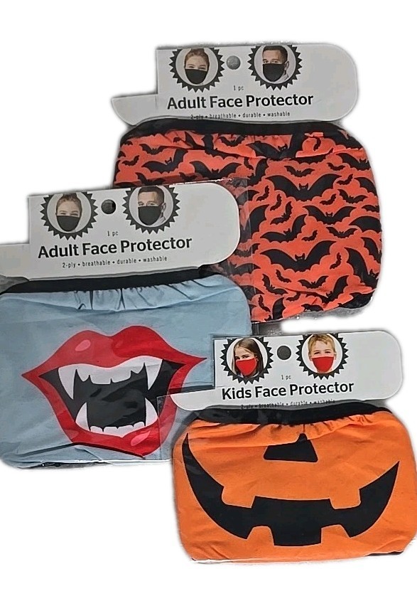 3- Halloween Theme Face Protectors ~ 2 ply ~ Breathable ~ Durable ~ Washable