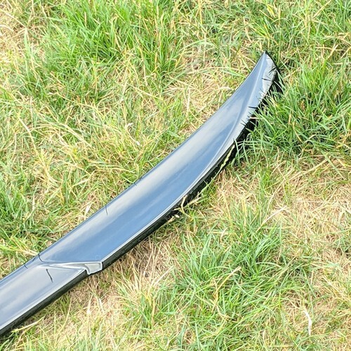 Representative item is shown. Self adhesive black plastic spoiler wing new in the original packaging. Made in China. No returns if installed. Must be installed over 50'F, adhesive will not properly bond at lower and temperature and customer reviews state installation surface must be pristine clean. Installation shops recommend using additional high-quality double stick tape such as that made by 3M. Please review our business policies in our store for information regarding returns, shipping and warranties.