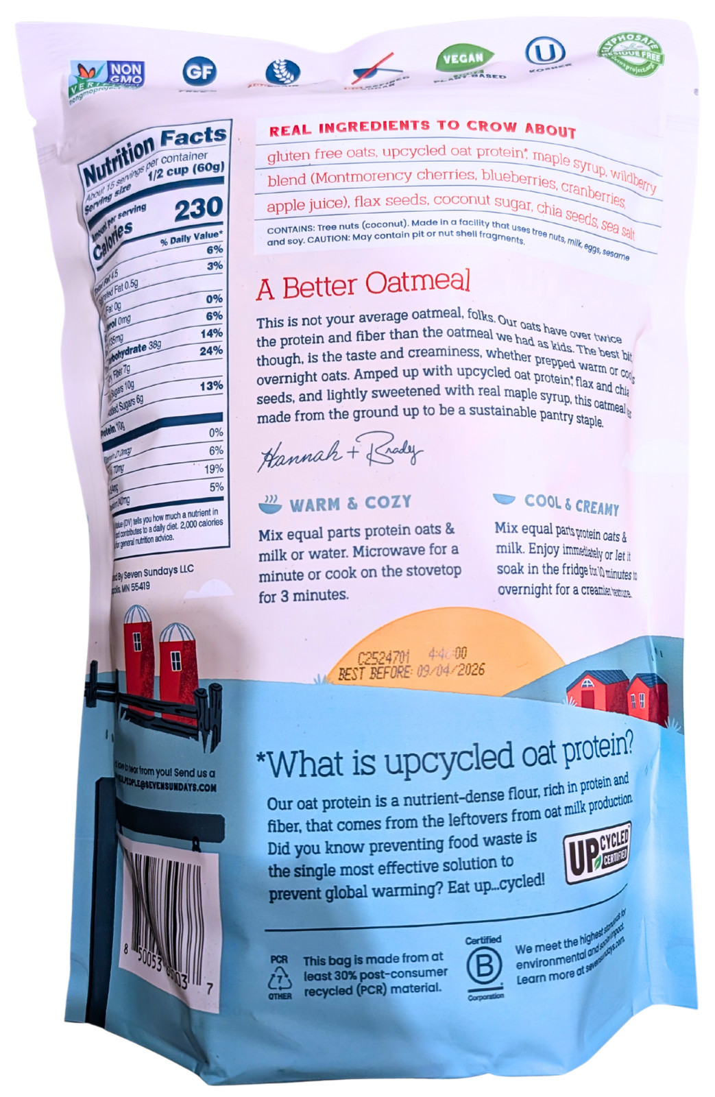 - Seven Sundays Wildberry Protein Oats 32 Ounce Bag EXP 09/2026