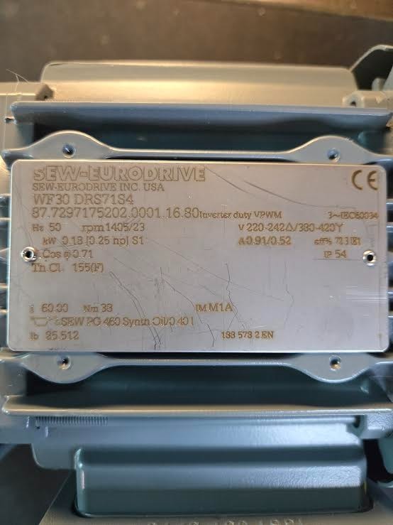 - SEW EURODRIVE WF30 DRS71S4 0.18KW 0.25HP 1/4HP INVERTER DUTY GEAR MOTOR NEW $499