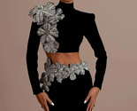 - Sexy Long Sleeves Bandage Turtleneck Shiny Diamonds Flower Top + Bodycon Mini S