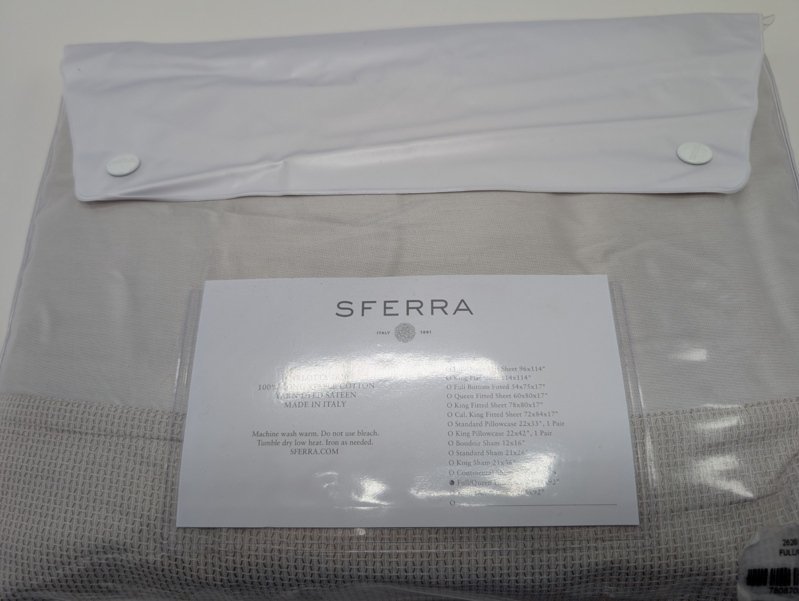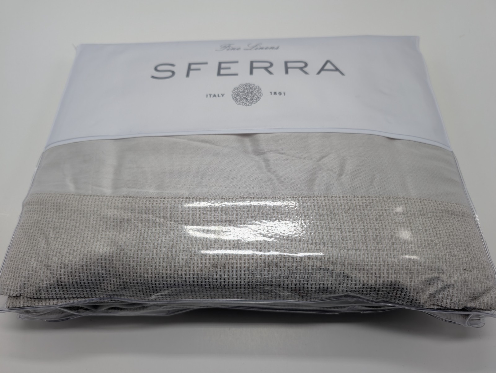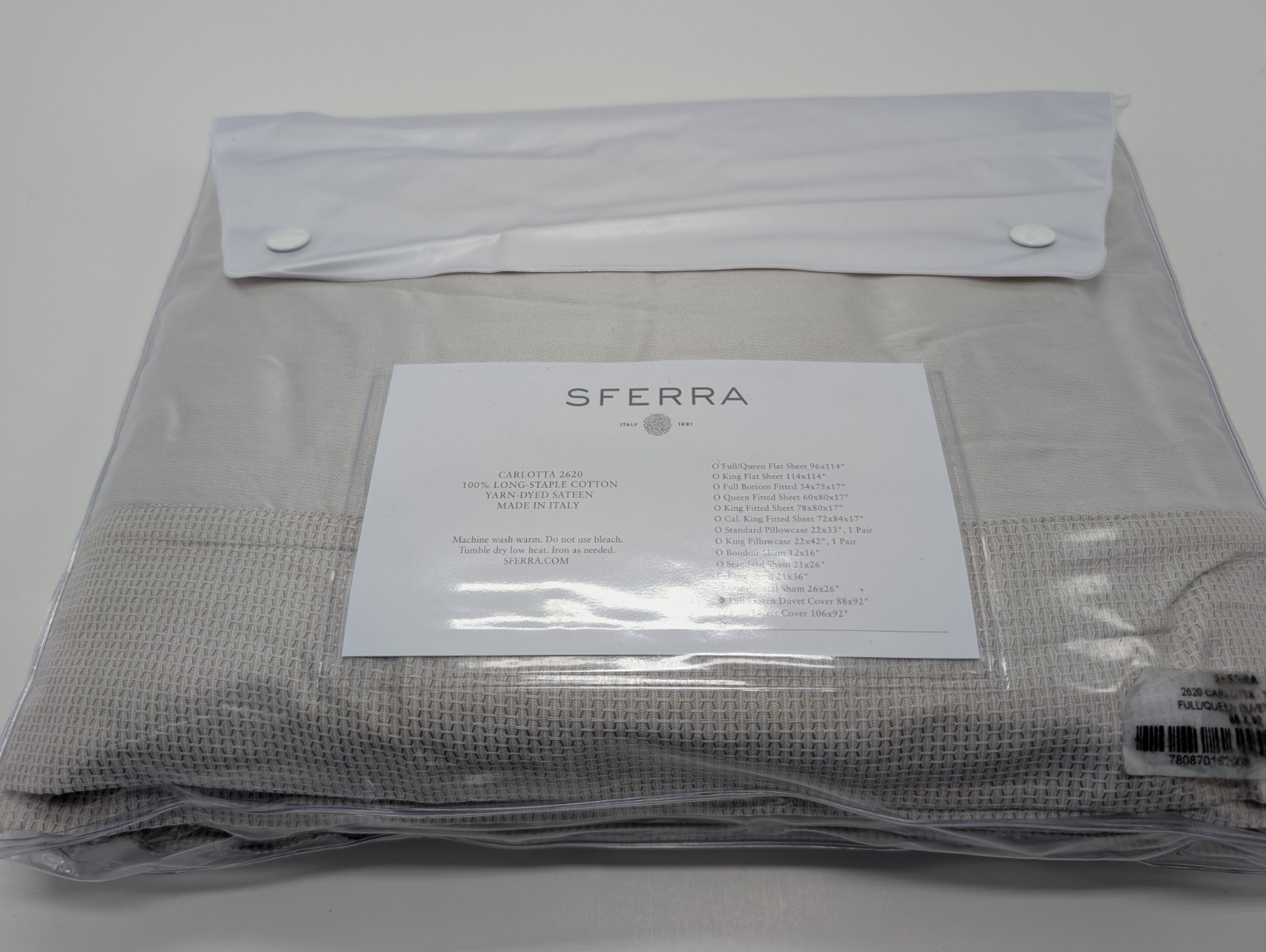 - Sferra Carlotta Taupe Queen Duvet Textured Cuff Cotton Sateen Jacquard Italy NEW