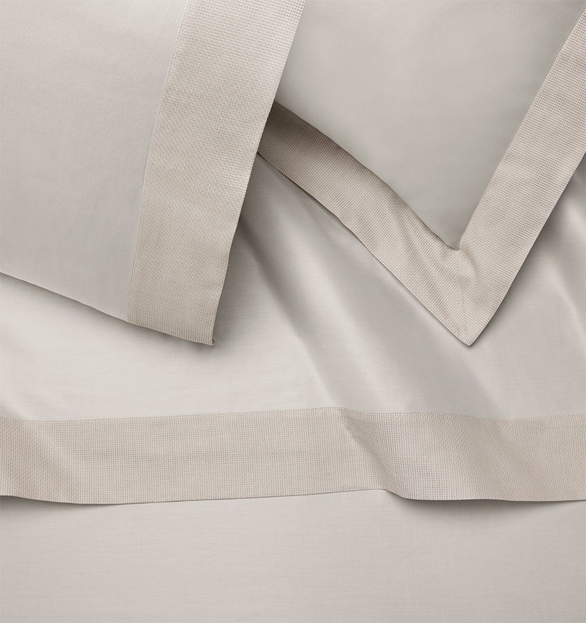 Carlotta, a captivating yarn-dyed jacquard cuff collection crafted in Italy from long-staple cotton, draws inspiration from the delicate lace texture found in our esteemed Tivoli collection. With meticulous craftsmanship, it weaves visual interest and offers a luxurious tactile experience. Imagine the gentle touch of its textured cuff against a backdrop of solid sateen, creating an ensemble that whispers elegance.