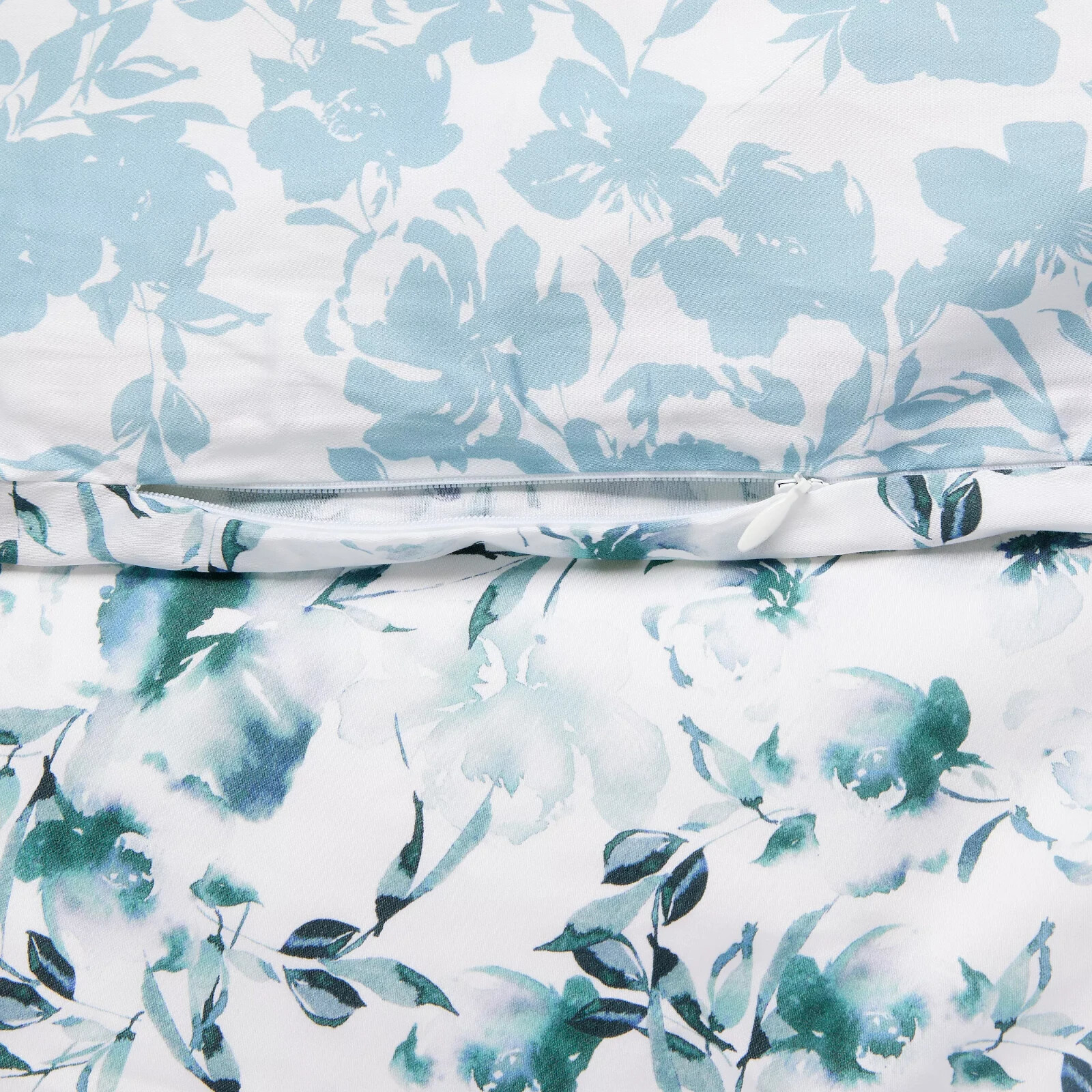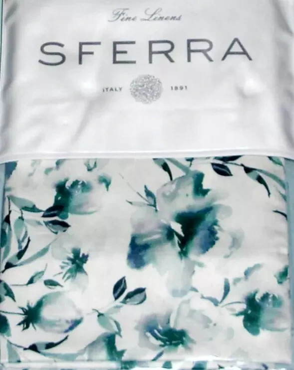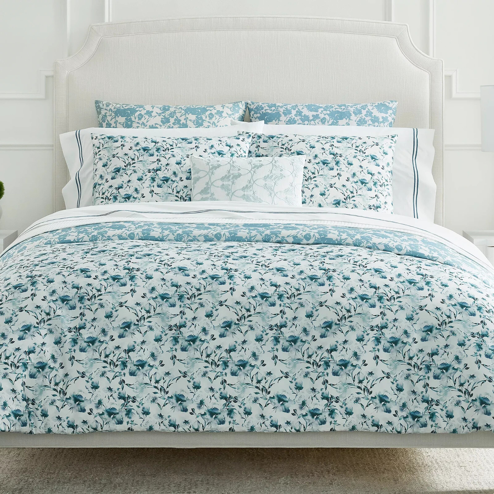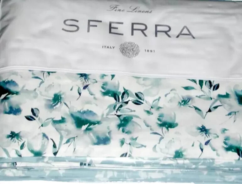 - Sferra Duchesse Cadet Blue Queen Duvet Set 3PC Floral Print Reversible Italy NEW