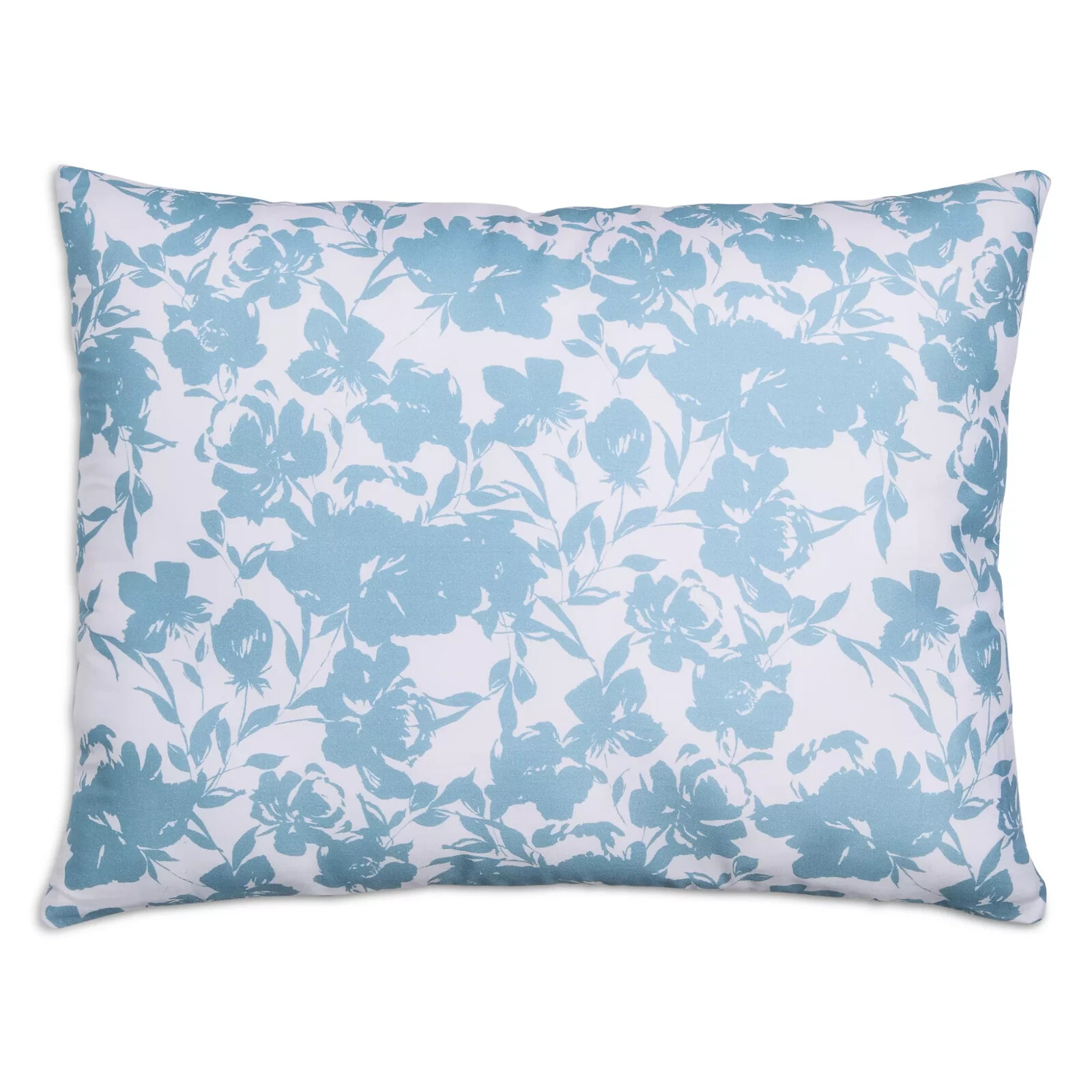 This beautiful romantic floral pattern features brushlike strokes in a palette of blues on white on one side, with solid blue hued floral pattern on the other, creating a reversible style