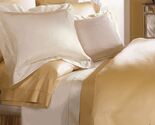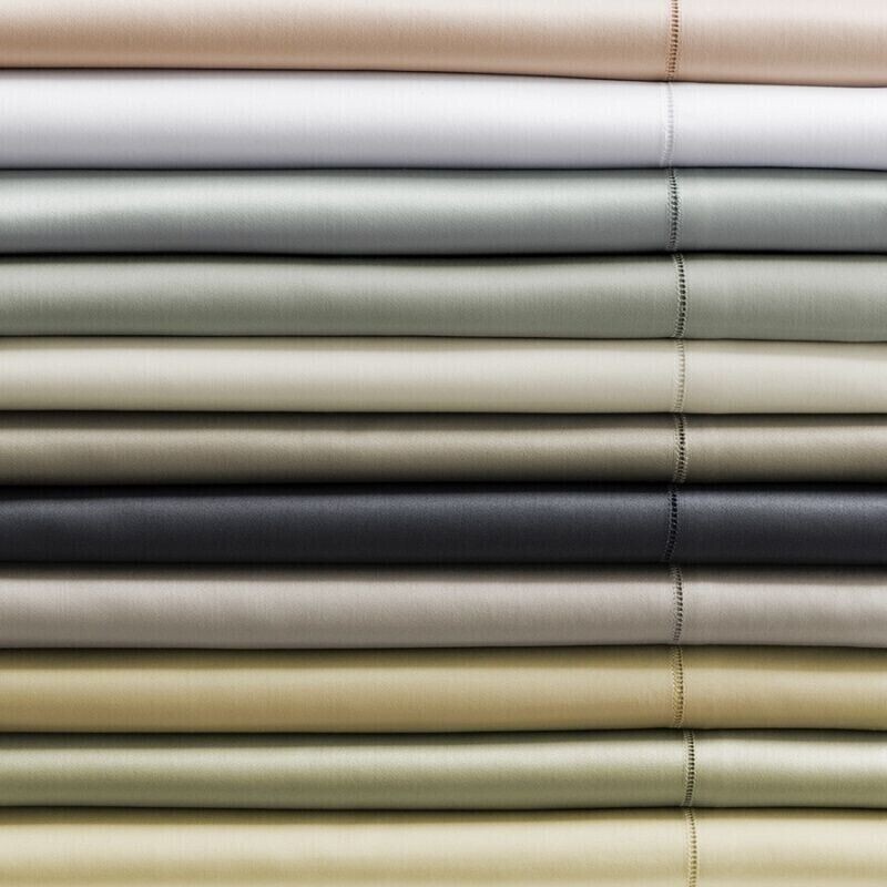 Sferra's classic sateen with a luminous sheen, rich drape and silken hand, Giotto is a 590TC Egyptian cotton product made in Italy. The sheets, cases and shams are finished with a crisp, classic border of hemstitching. The duvet cover is flanges with hemstitch on three sides. The bed skirt is gathered with a plain hem. One of the top five sheet sellers at Sferra.