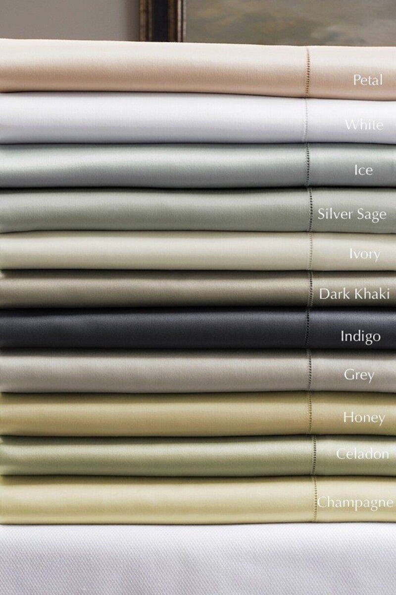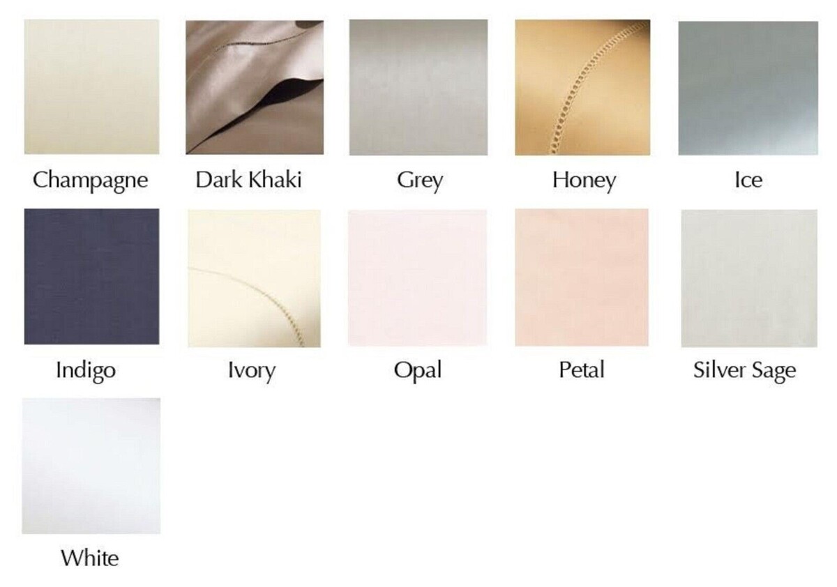 Slip in to luxury with Sferra's Giotto Collection. This classic, refined sateen bedding has a luminous sheen, rich drape and silken hand, finished with a crisp, classic hemstitched border. This sheeting is of the finest quality crafted in Italy. The duvet cover is flanged with hemstitch on three sides with a button closure while the bed skirt is gathered with a plain hem.