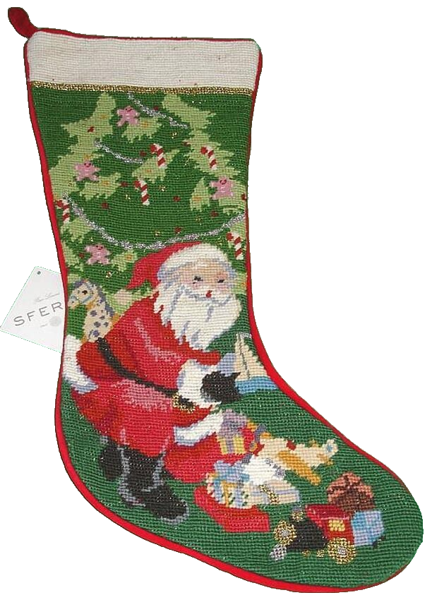 - Sferra Santa Wool Needlepoint Christmas Stocking Handmade New