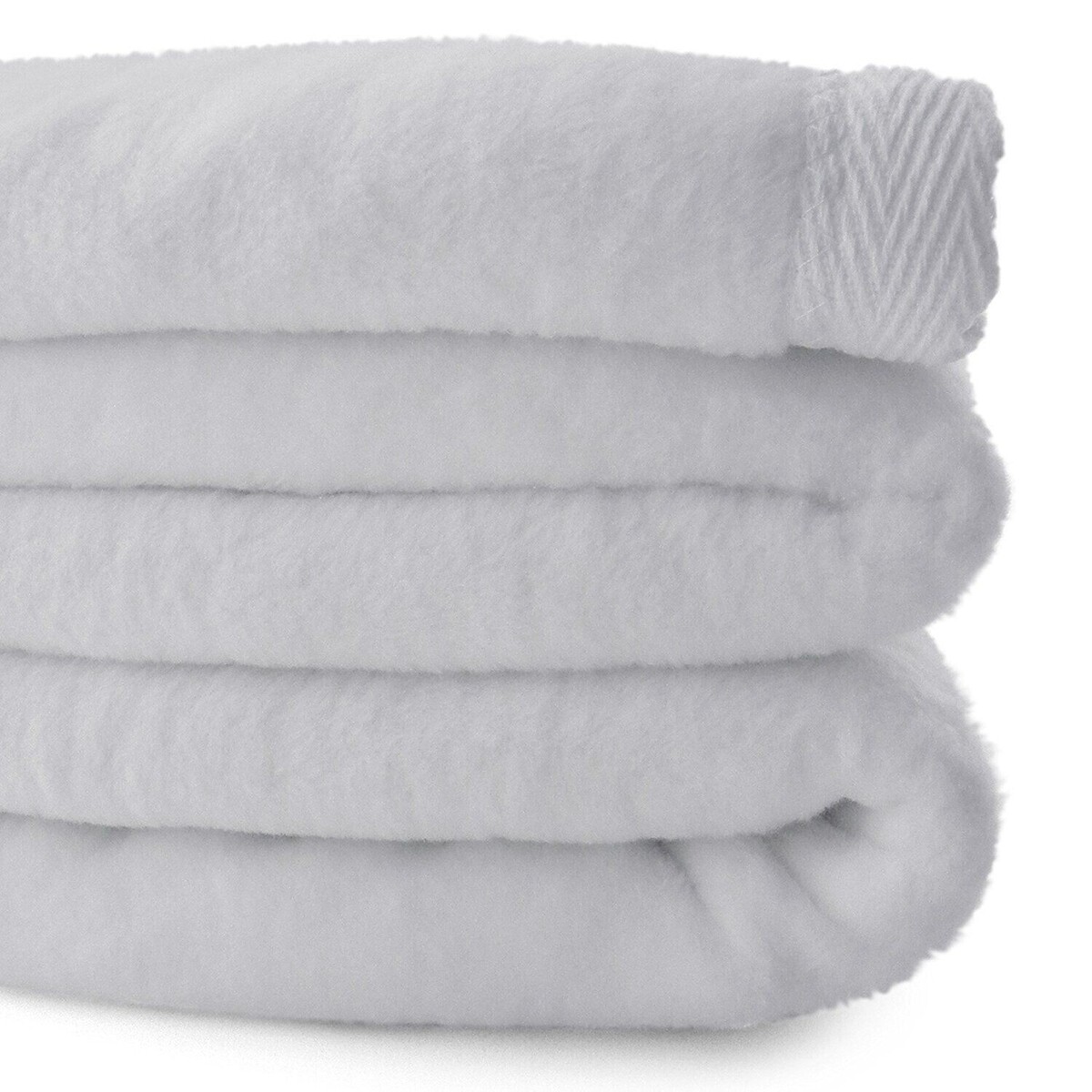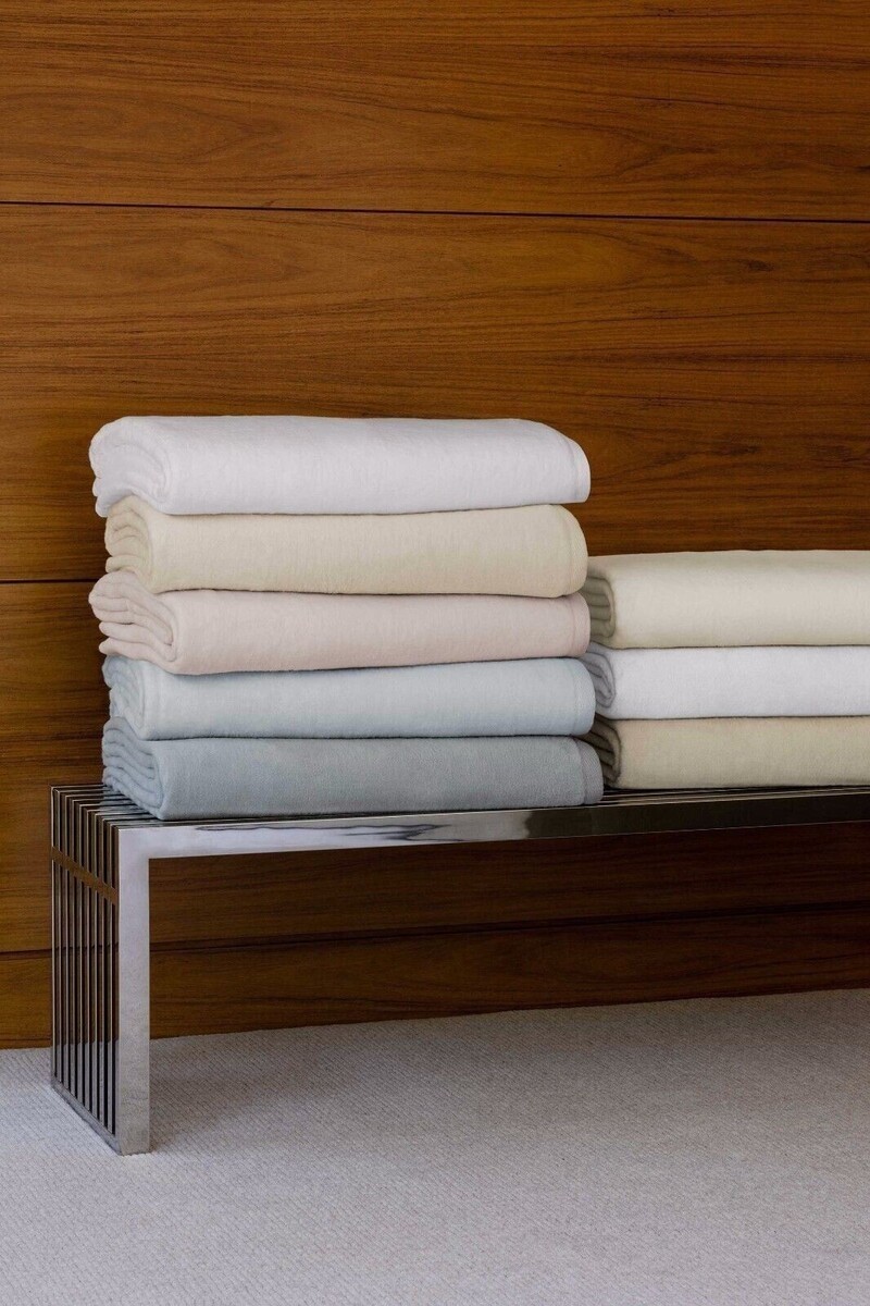 - Sferra White Queen Blanket Plush Solid Brushed Combed Cotton Home Collection NEW