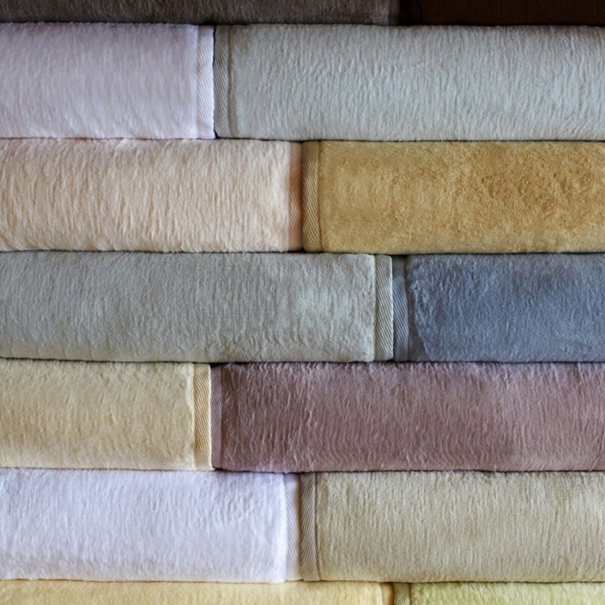 A plush, velvety blanket woven from long-staple combed cotton, brushed for softness and warmth. Luxuriously soft and light blankets offer season-spanning comfort. All-season blanket has a dense pile and textured border.