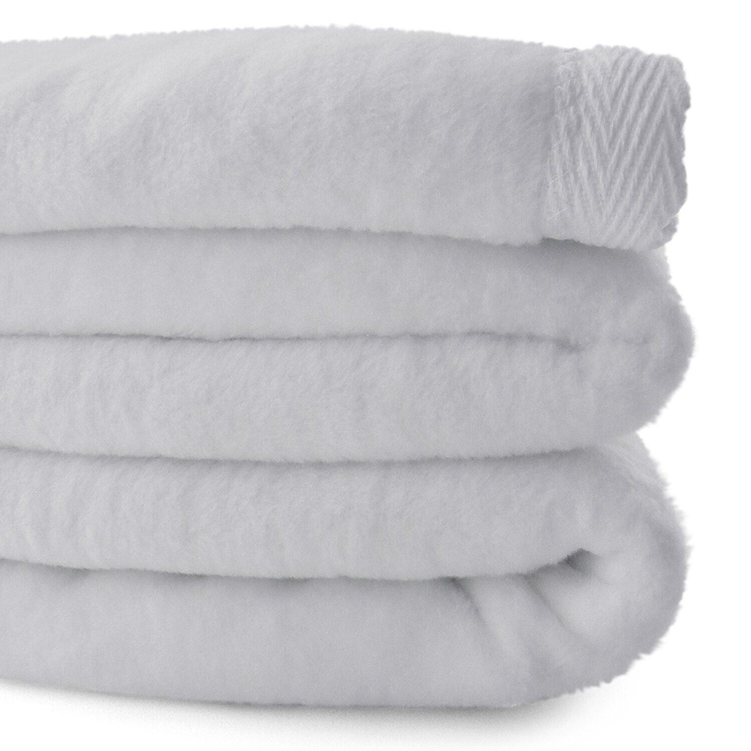 - Sferra White Queen Blanket Solid Brushed Combed Cotton Plush Home Collection NEW