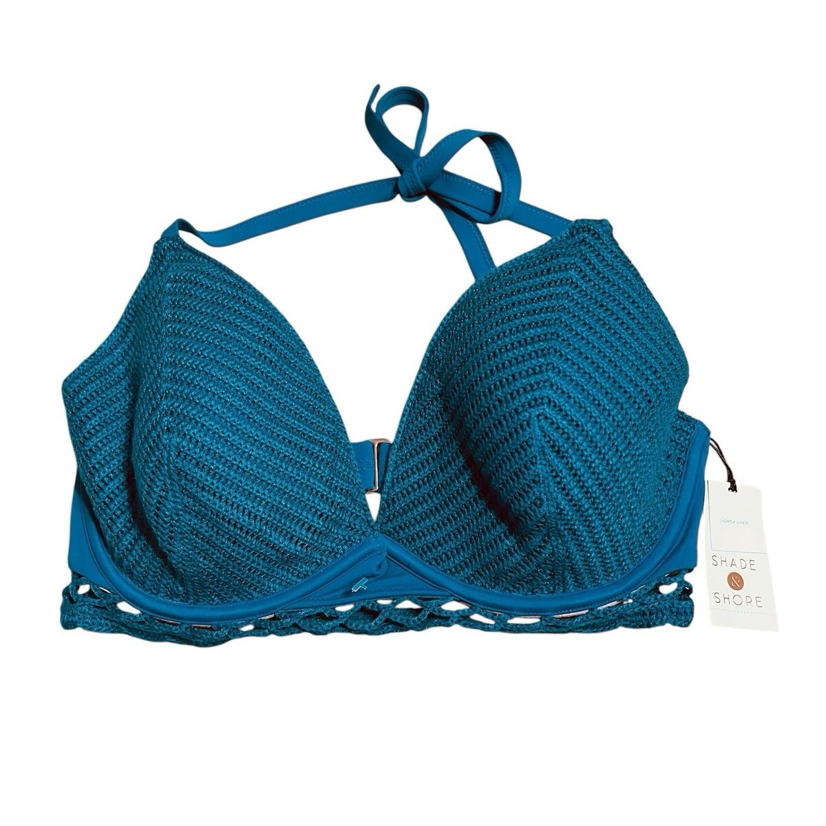 - Shade Shore Crochet Triangle Bikini Top 36DD Ocean Blue Teal Long Lined Boho NWT