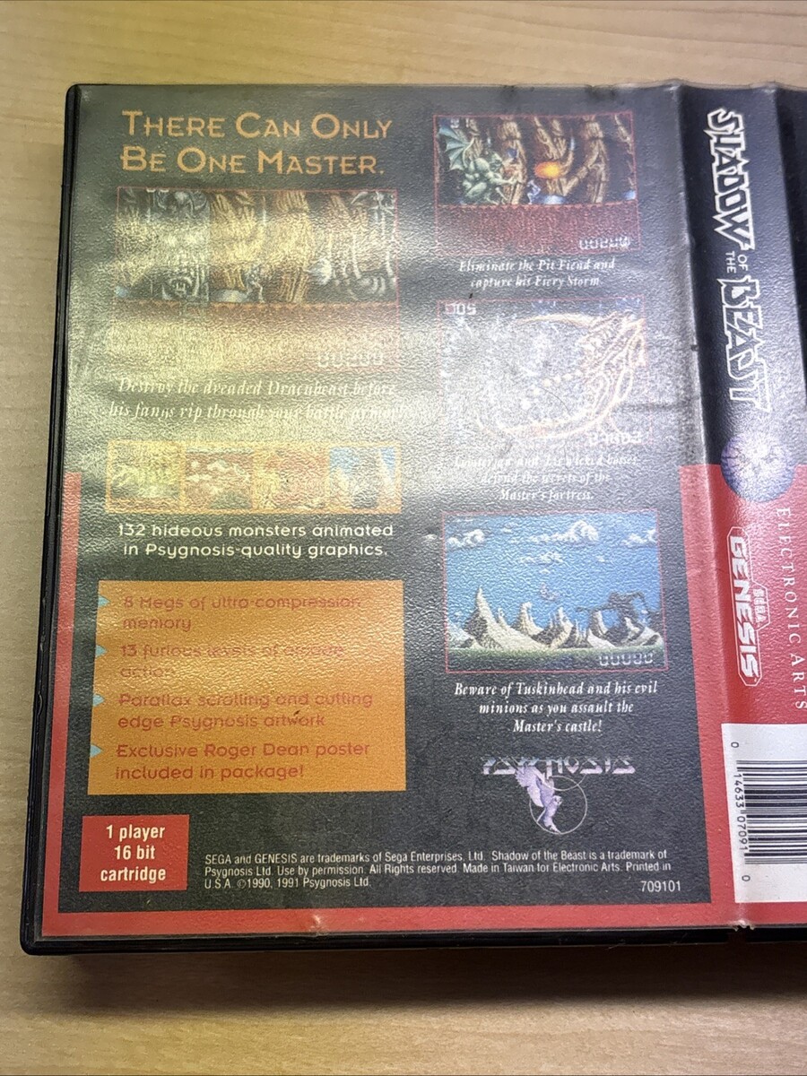 Shadow of the Beast - Sega Genesis - 1991 - w/ Case. The case doesn?t hold the game as it looks like the tabs got broken off on the case inside.