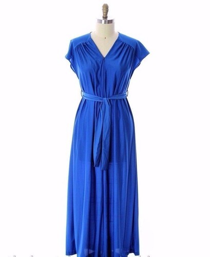 - Shadowline Vintage Hostess Gown Robe M Maxi 1970s Cobalt Blue NWOT