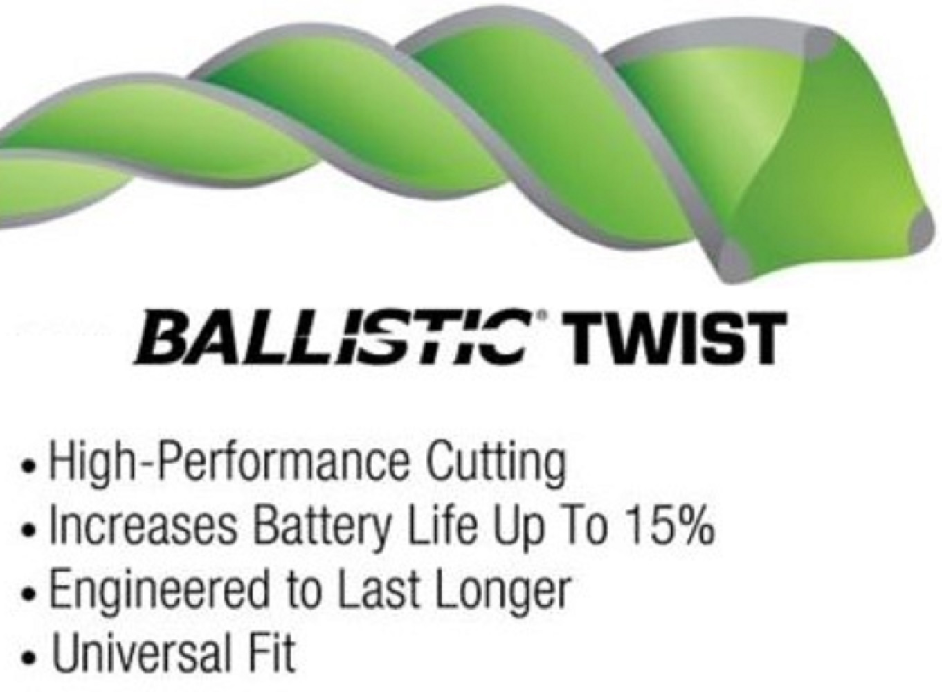 Designed for heavy-duty use and lasts significantly longer than standard trimmer lines The universal fit and .155 in. diameter allow the Ballistic trimmer line to work with most walk-behind gas trimmers A unique aerodynamic twist design reduces line vibration and provides a cleaner, more level cut Flexible enough to be used for cutting grass, thick weeds, and light brush Includes a bonus line cutter for convenient and quick line cuts This .155 in. trimmer line also comes with a cut 90 ft. cage Ballistic Twist line is proudly made in the USA under tight quality controls for assurance