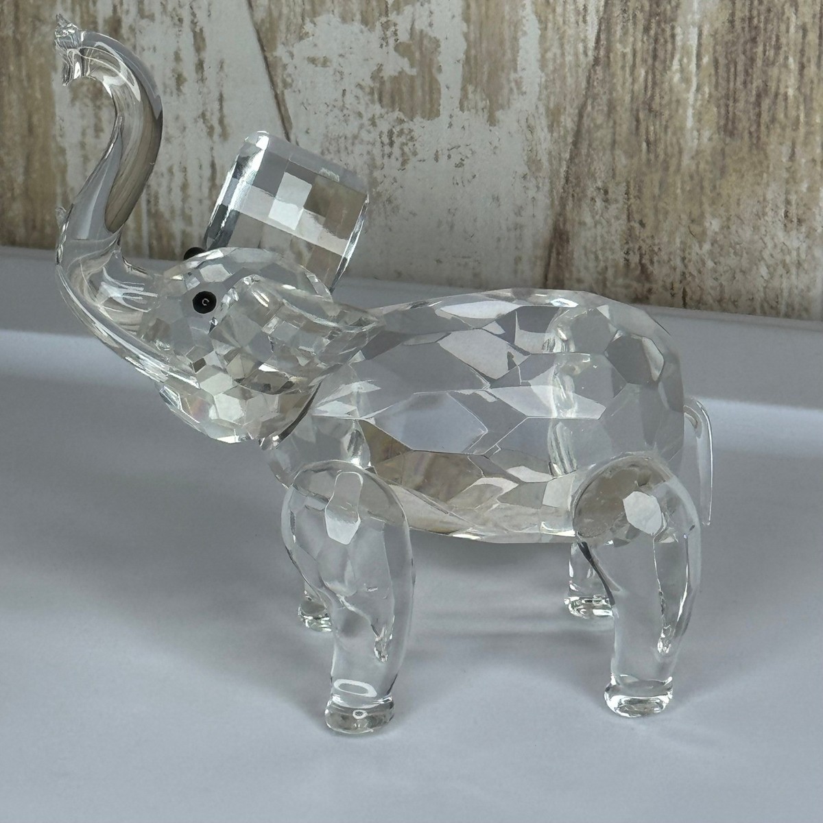 Keywords: crystal elephant, glass elephant, animal decor, tabletop accent, desk accessory, Irish crystal, handcrafted, collectible, home accent, decorative, gift idea, feng shui
