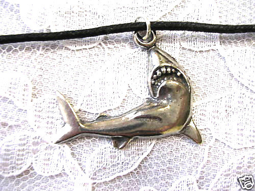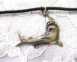 - SHARK SWIMMING GREAT WHITE JAWS OCEAN SURF JEWELRY ADJ CORD PEWTER NECKLACE