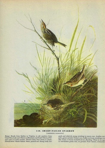 - Sharp Tailed Sparrow Bird 1946 Color Art Print John James Audubon Nature DWV2D