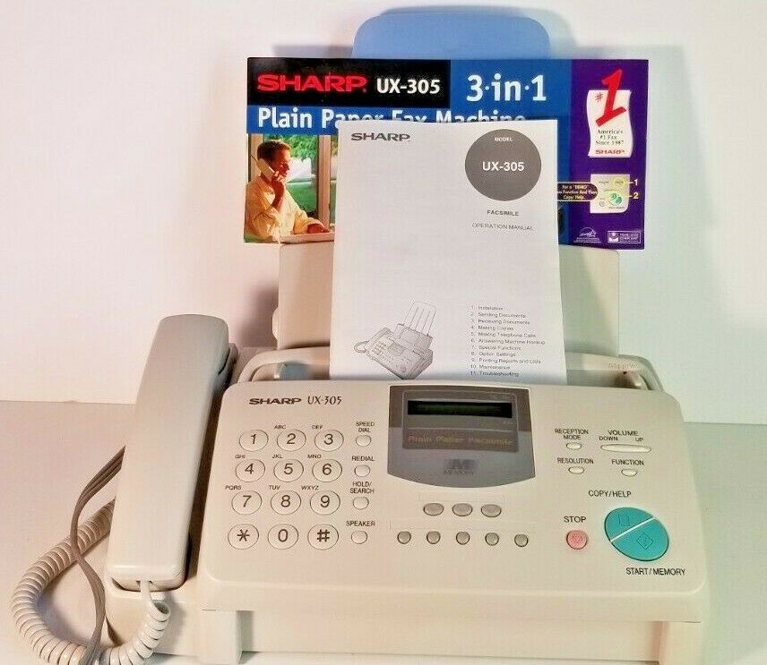 - Sharp UX-305 Plain Paper Fax Facsimile Machine-Copier Phone Home Office W/Box