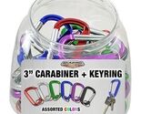 Carabineer with key ring display includes one 1' key ring and 48 pieces loaded in fishbowl. Available in 6 assorted, fun colors; red, silver, green, blue, purple and black. Product measure 3".