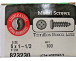 - Sheet Metal Screw 6 x 1-1/2" Pan-Head, Phillips, Steel 100-PK - Hillman 823230