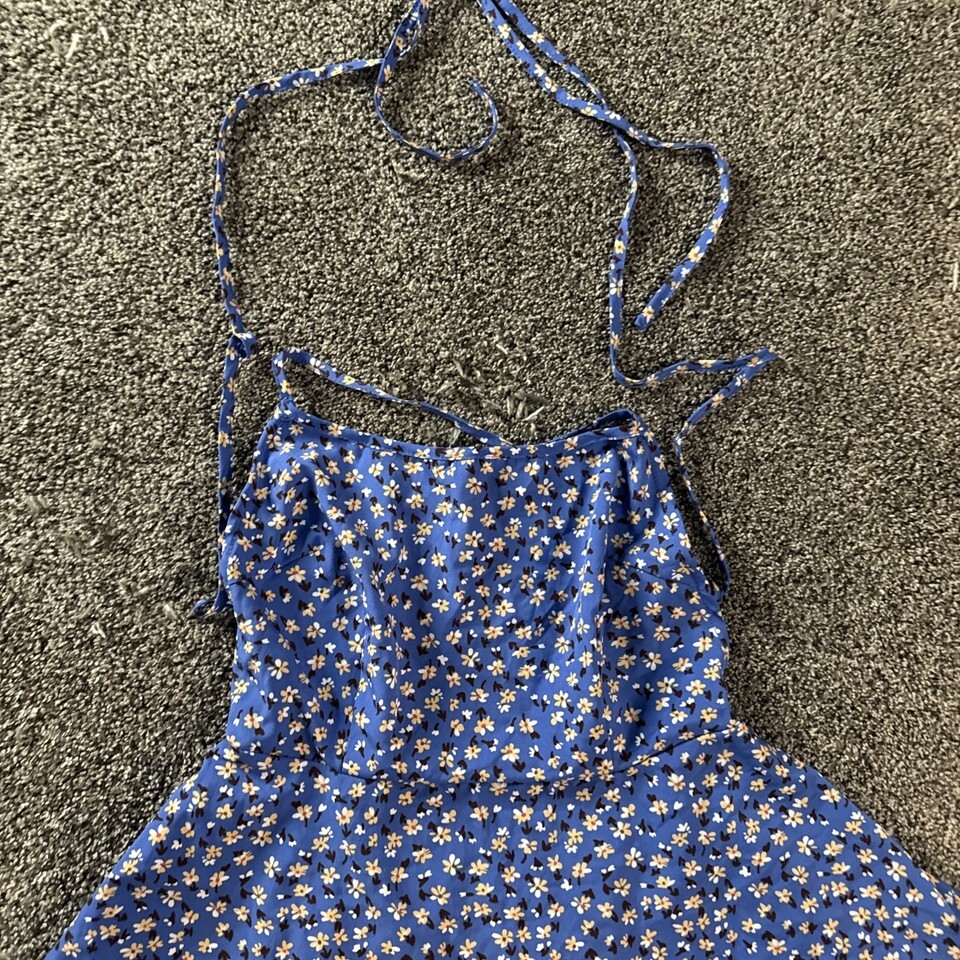 Shein Cross Strap Open Back Floral Print Dress (S) Small Blue. Condition is Pre-owned - Good. Shipped with USPS Ground Advantage.