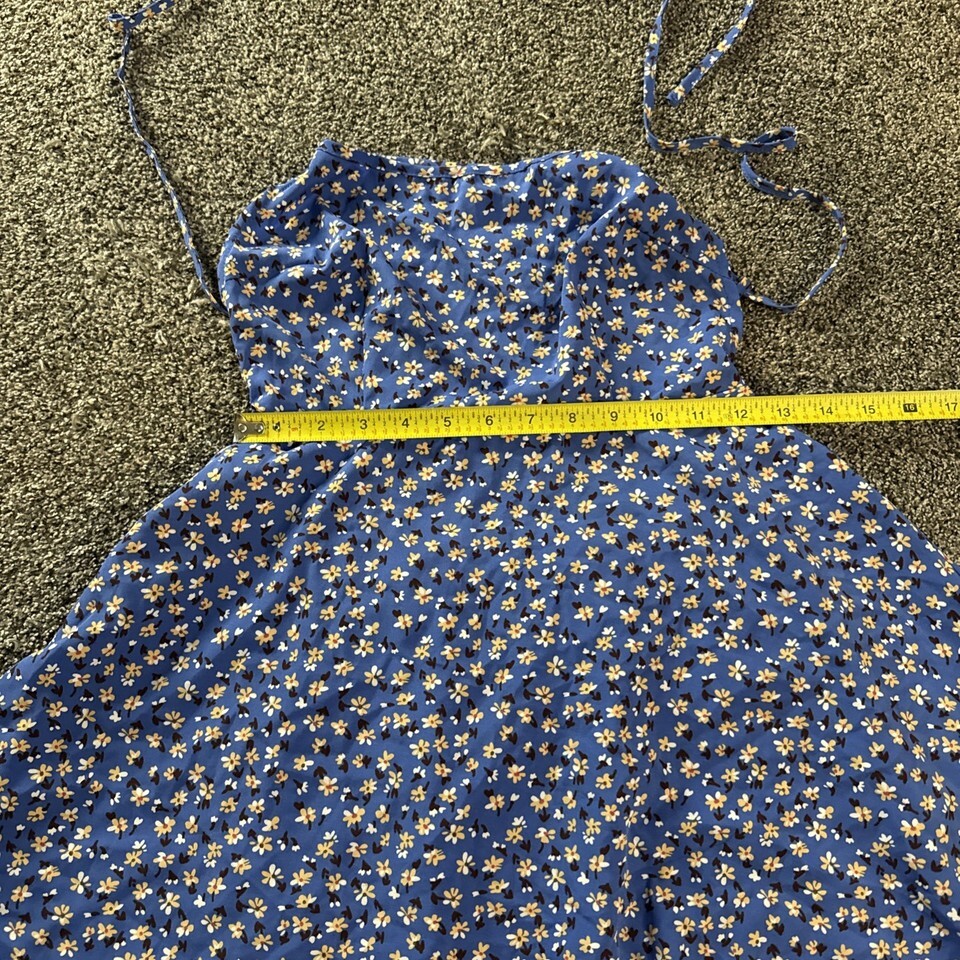 - Shein Cross Strap Open Back Floral Print Dress (S) Small Blue