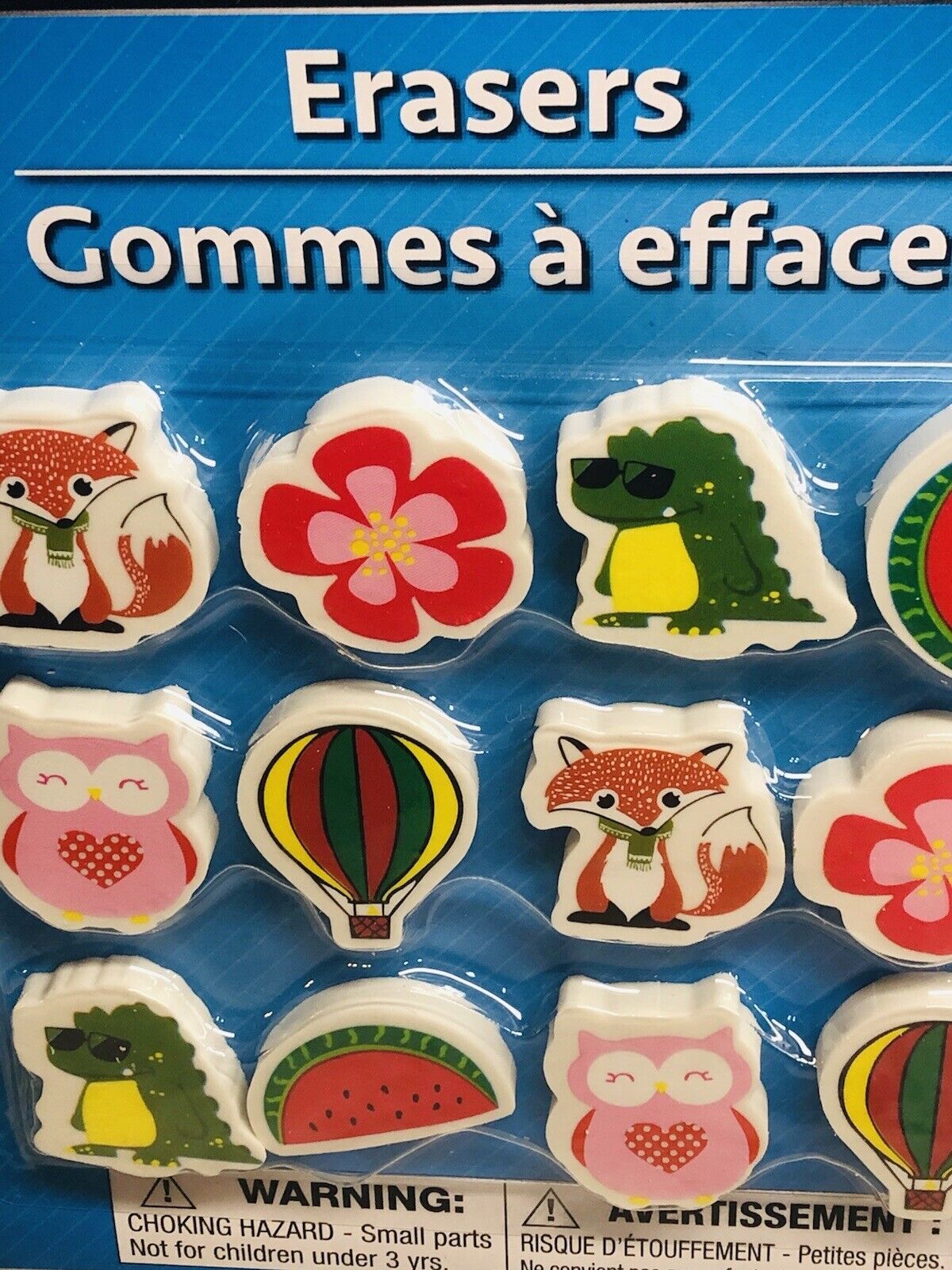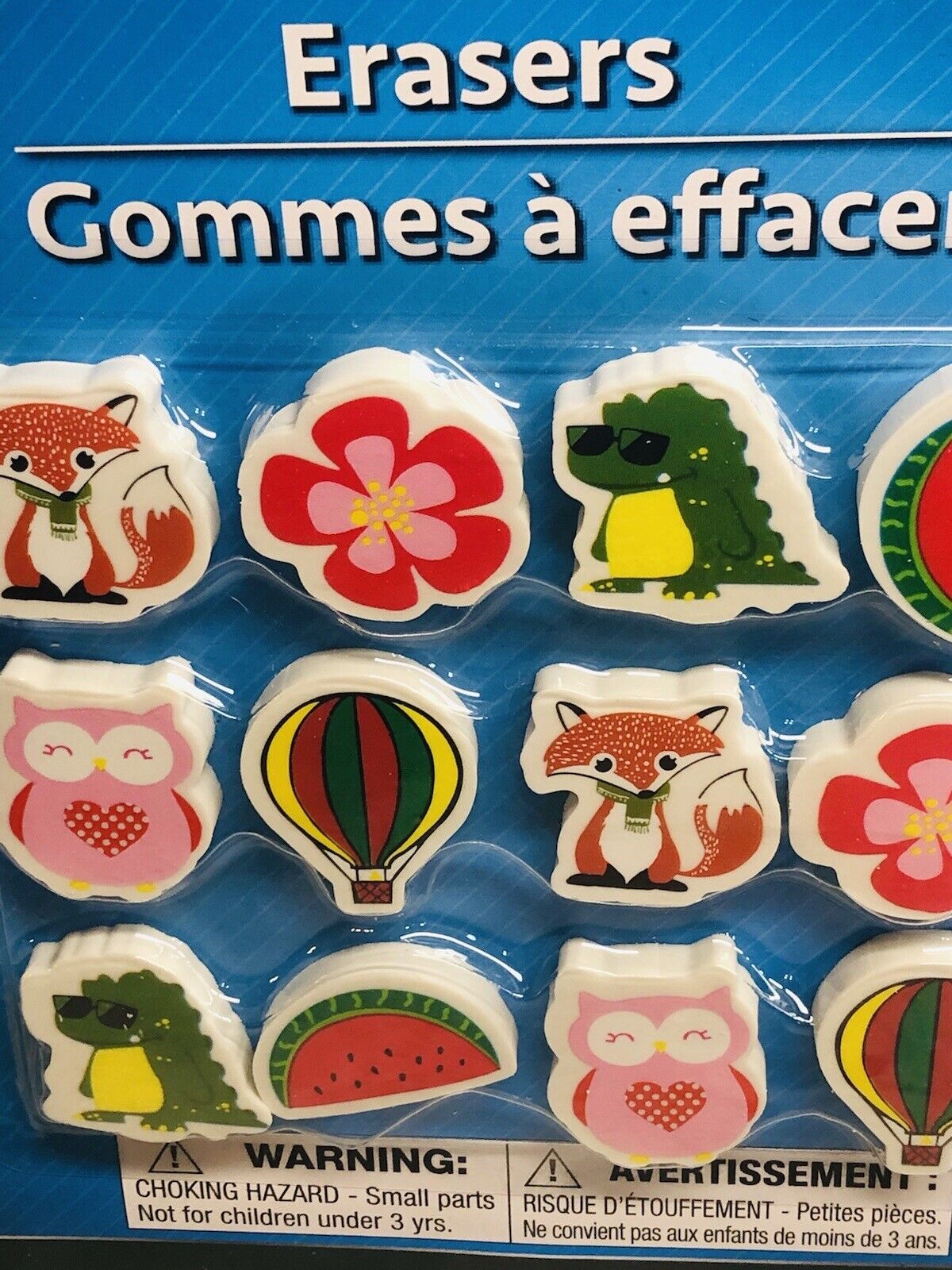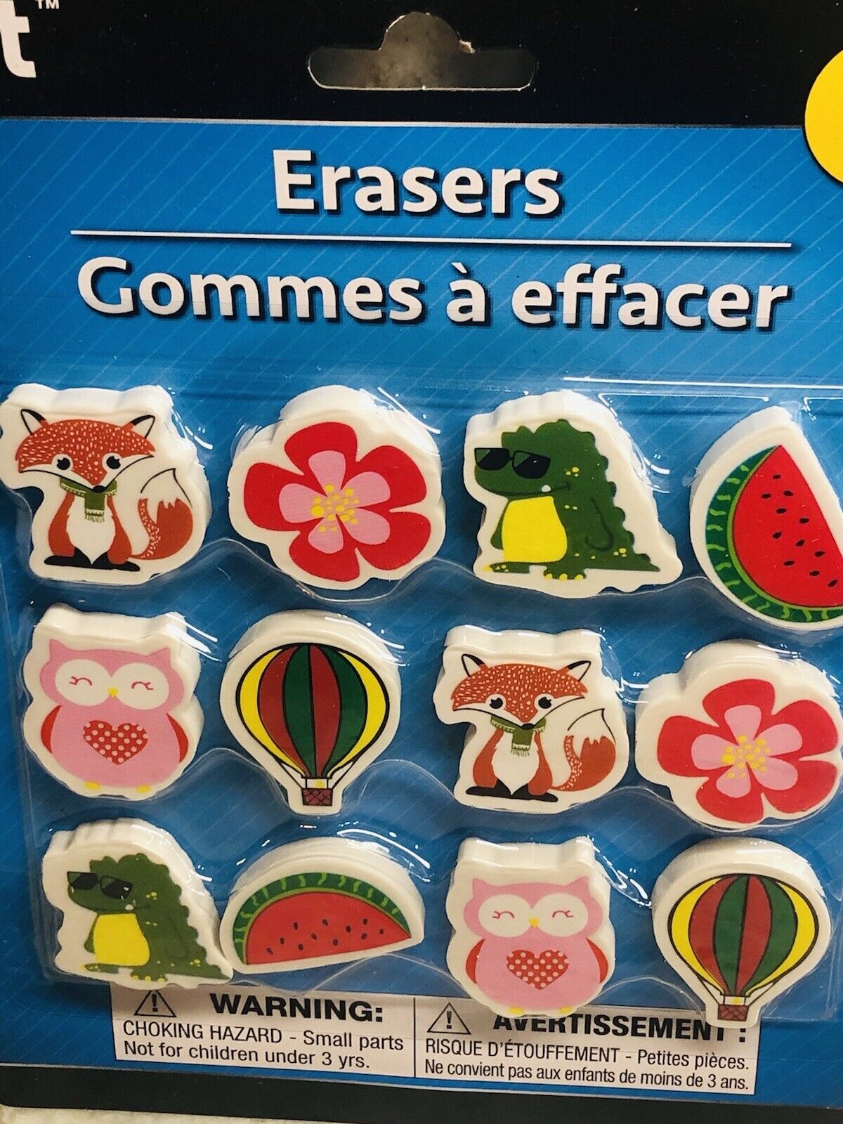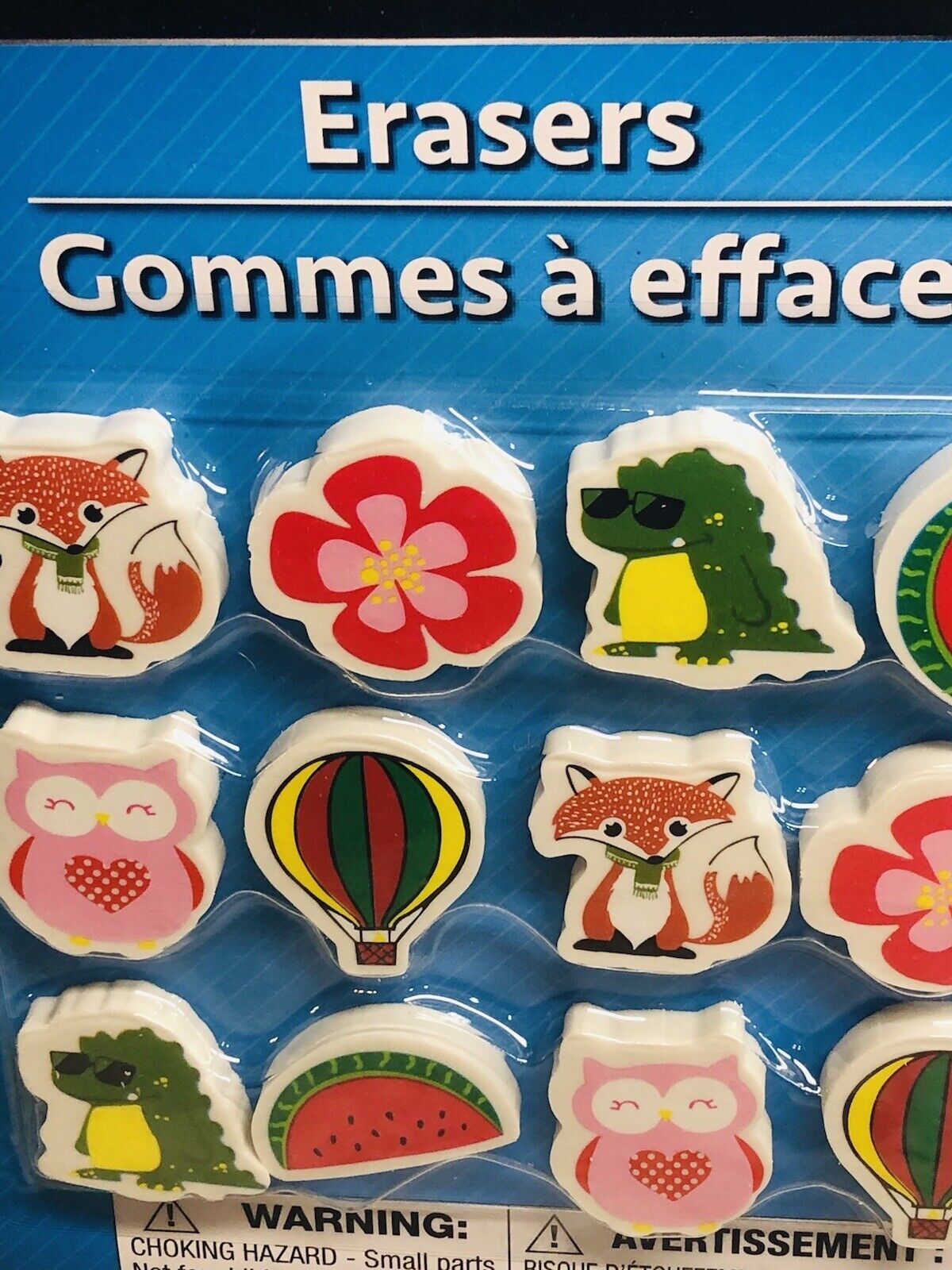 - ShipN24Hours.NewJolt Kids(12Pack)Erasers:Fox/Flower/Dinosaur/Watermelon/Ballon.