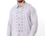 Men?s long-sleeve shirt made from a linen-viscose blend with an ornament ? a stylish and practical choice for everyday wear. Natural linen provides coolness and freshness in warm weather, while viscose makes the fabric soft, flexible, and resistant to wrinkling. The ornament adds individuality, making the shirt a standout piece. The straight cut and long sleeves ensure versatility and comfort, while the option to roll up sleeves creates a relaxed style. Perfect for work, walks, or meetings, combining elegance and practicality in everyday outfits.