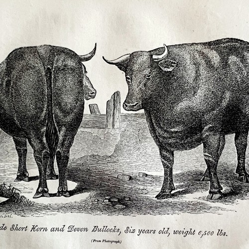 - Short Horn Ox And Devon Bull 1863 Victorian Agriculture Animals Art DWZ4A
